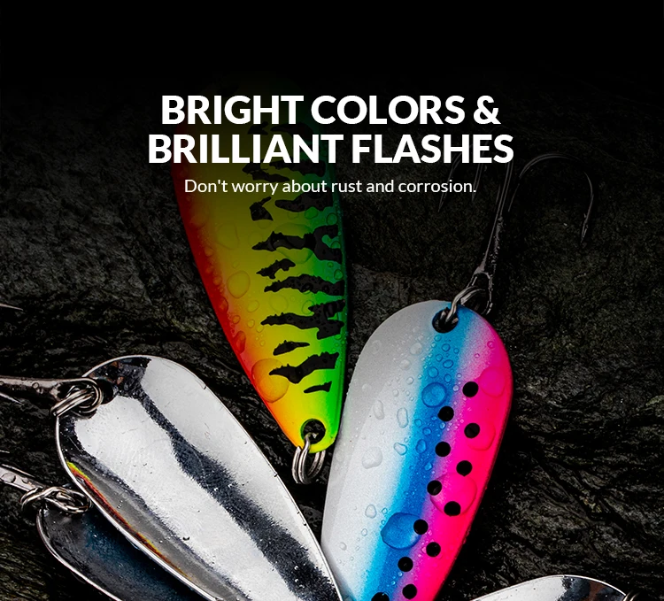 2. Nuestro juego de cucharas de pesca viene con colores brillantes para atraer peces grandes.Acción de buceo suave y rápida.
