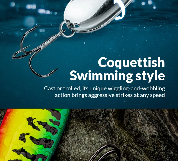 1. El señuelo de cuchara de pesca está hecho de metal de alta calidad.