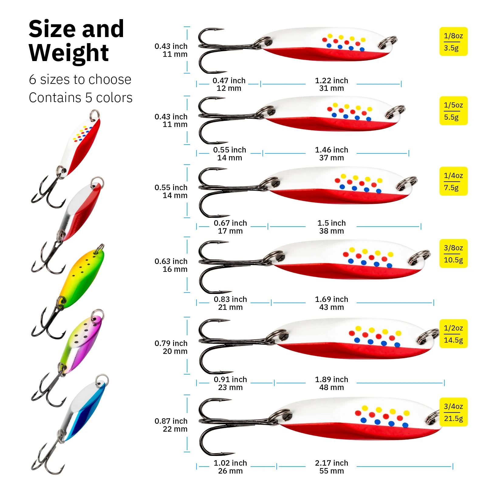 4. La cuchara de pesca se puede usar en agua dulce o salada, no se romperá, doblará ni corroerá y conserva su brillo incluso después de repetidas exposiciones al agua salada.