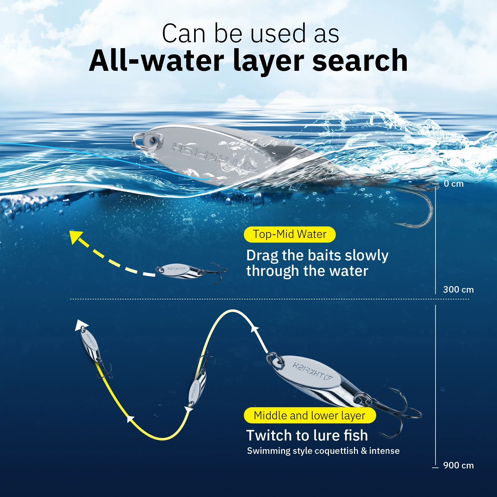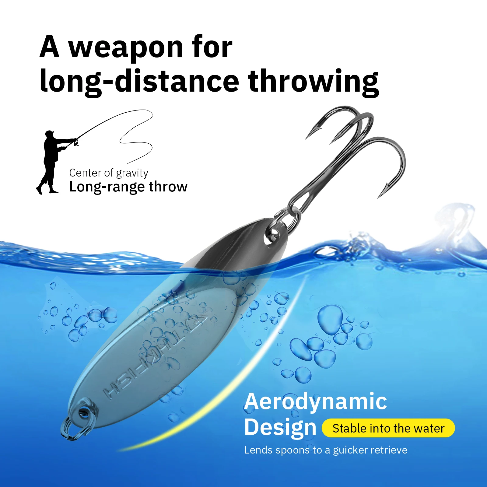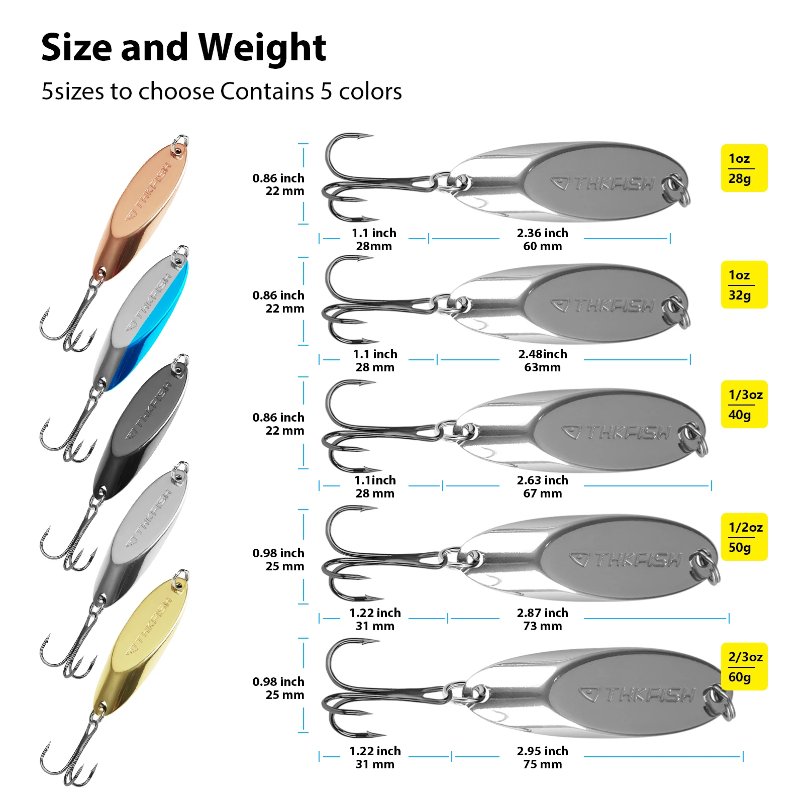2.Thkfish Metal Spoon Lure Machined from solid brass with a highly aerodynamic shape,this spoon lure achieves truly impressive casting distances.