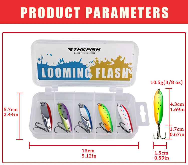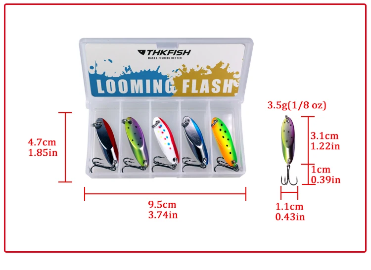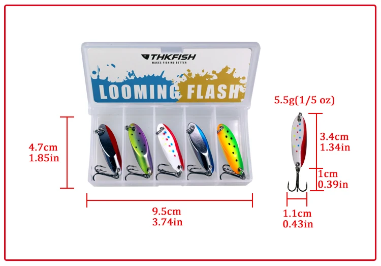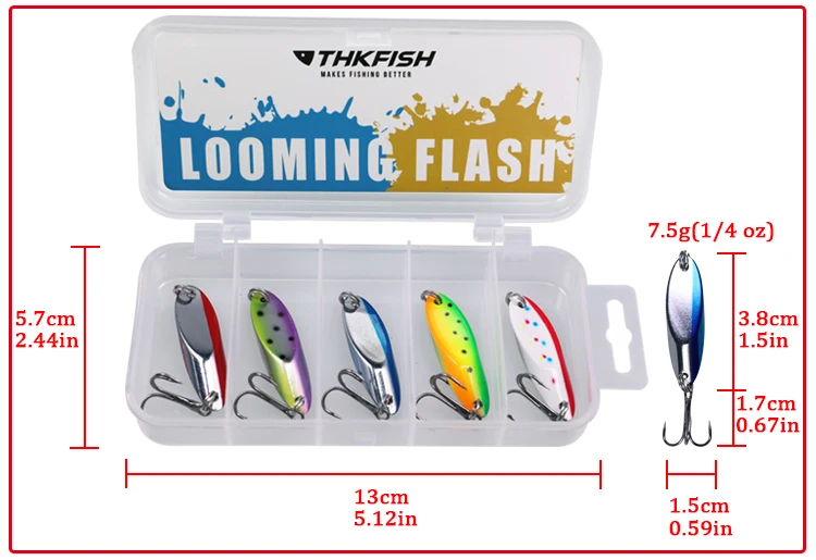 2.Thkfish Metal Spoon Lure Machined from solid brass with a highly aerodynamic shape,this spoon lure achieves truly impressive casting distances.