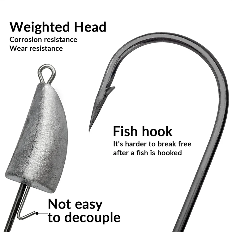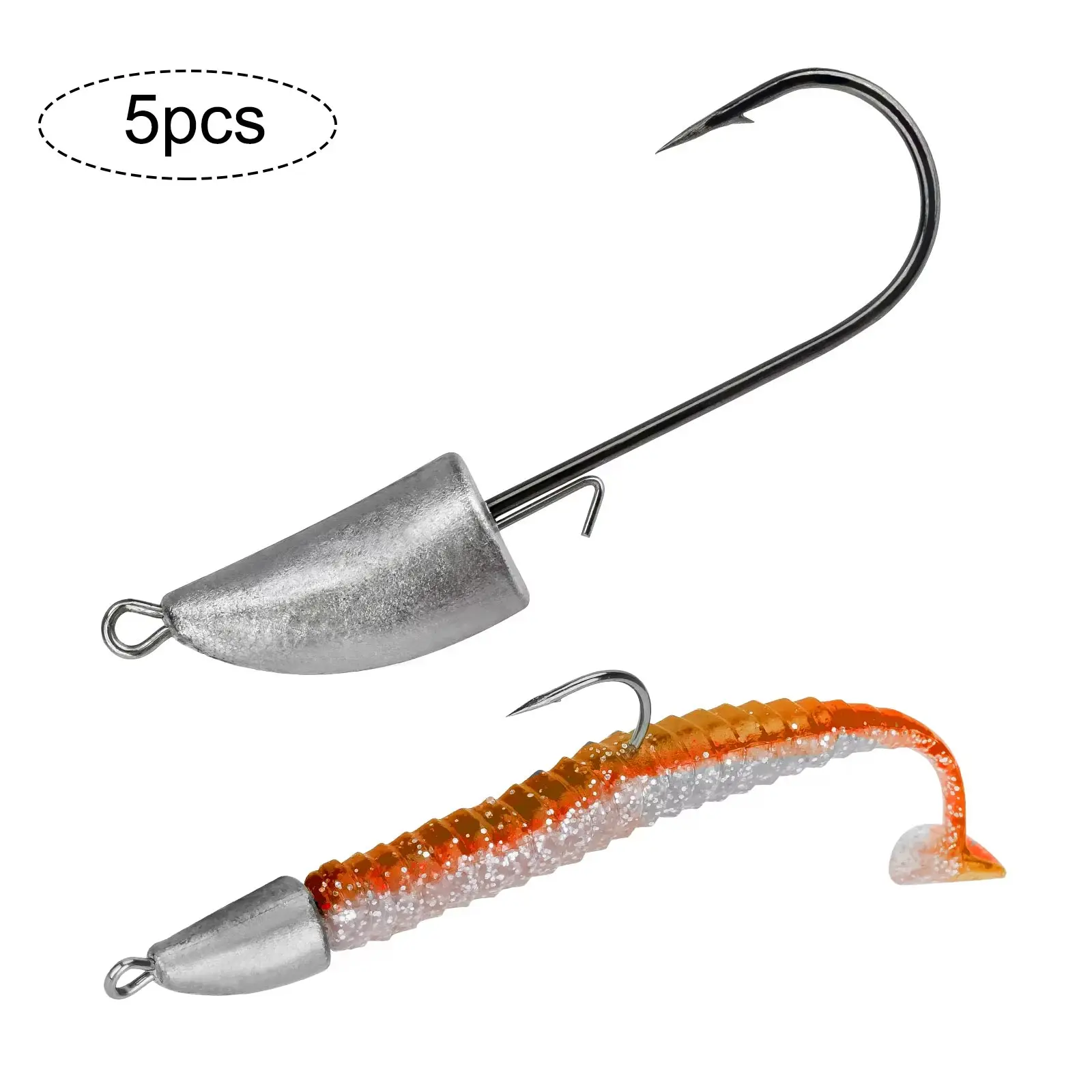 THKFISH 5 uds anzuelos con cabeza de anzuelo 3,5g 5g 7g 10g 14g 20g cabezas de bala anzuelo de pesca sin malezas para anzuelos de acero al carbono con gusano blando
