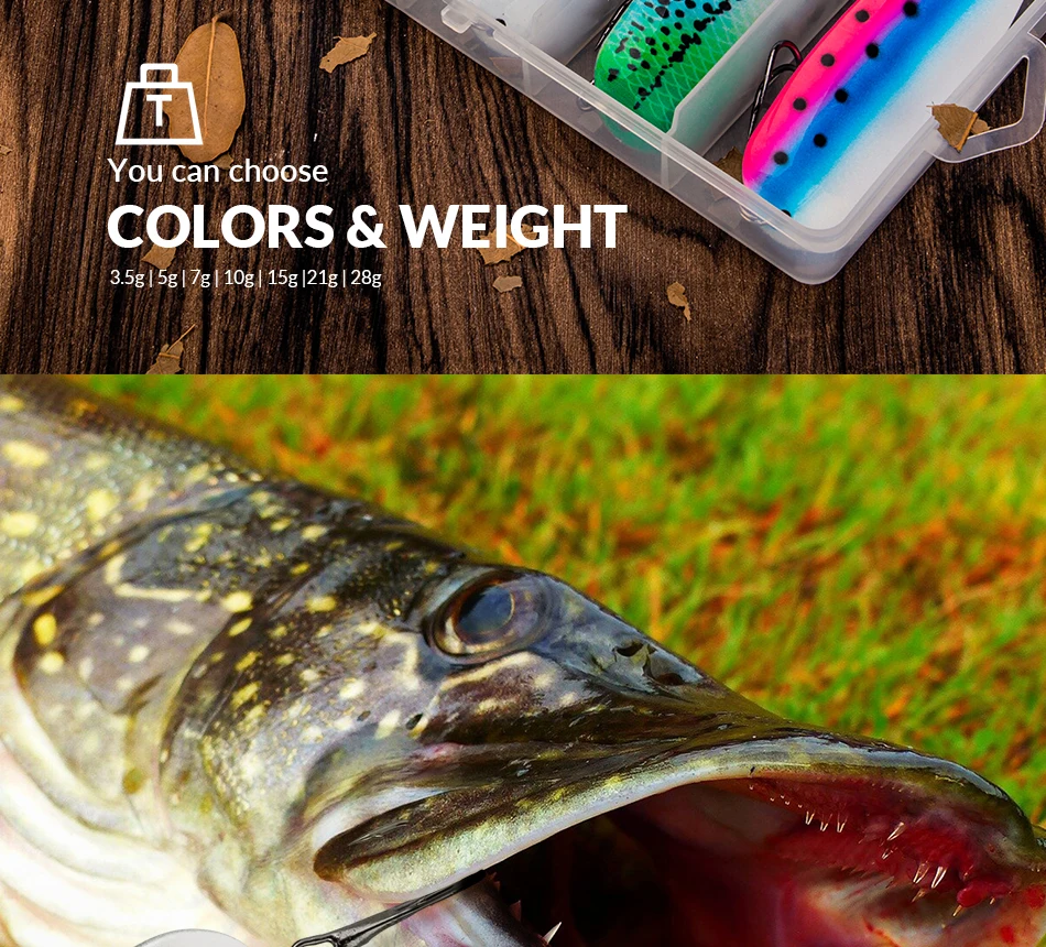 2.Nuestro juego de cucharas de pesca viene con colores brillantes para atraer peces grandes.Acción de buceo suave y rápida.