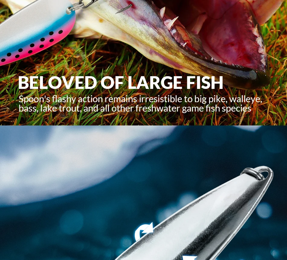 4.Las cucharas de metal se convierten en uno de los señuelos de cuchara más versátiles para múltiples especies, incluidas trucha, pez pan, lubina, salmón y cabeza de serpiente.