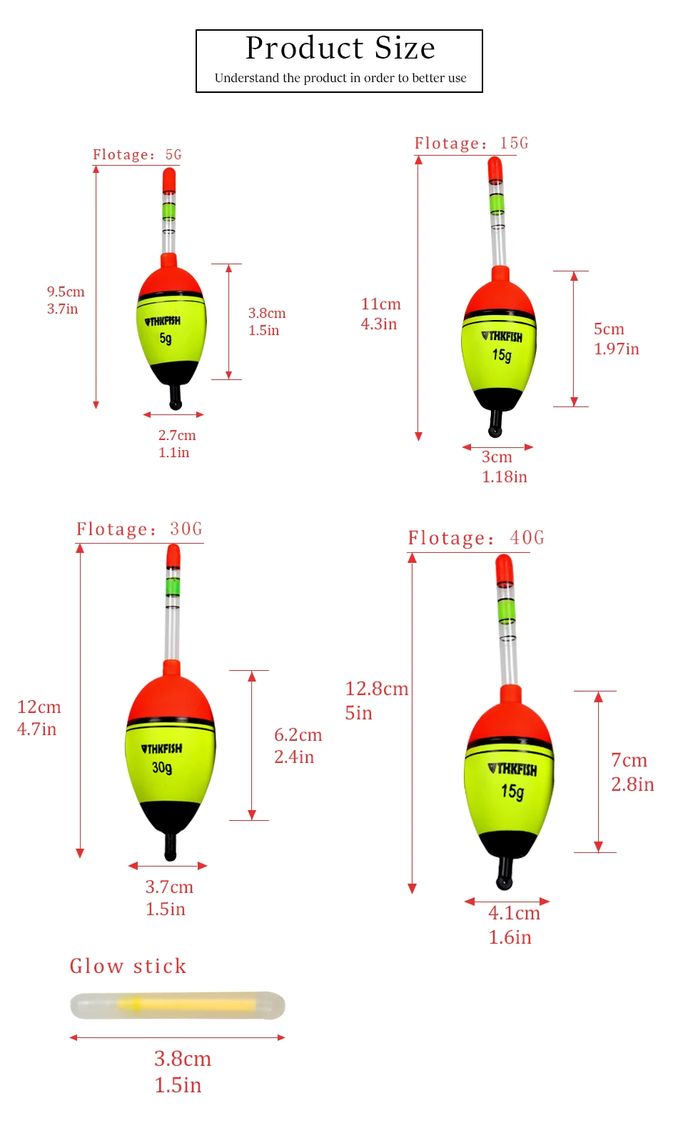 【Calidad hecha por THKFISH】 Toda la pintura de los flotadores de pesca tiene dos veces rociadas con pintura.Los flotadores nunca se agrietarán fácilmente.Fabricado con materiales de la más alta calidad, el cuerpo del flotador es elástico.