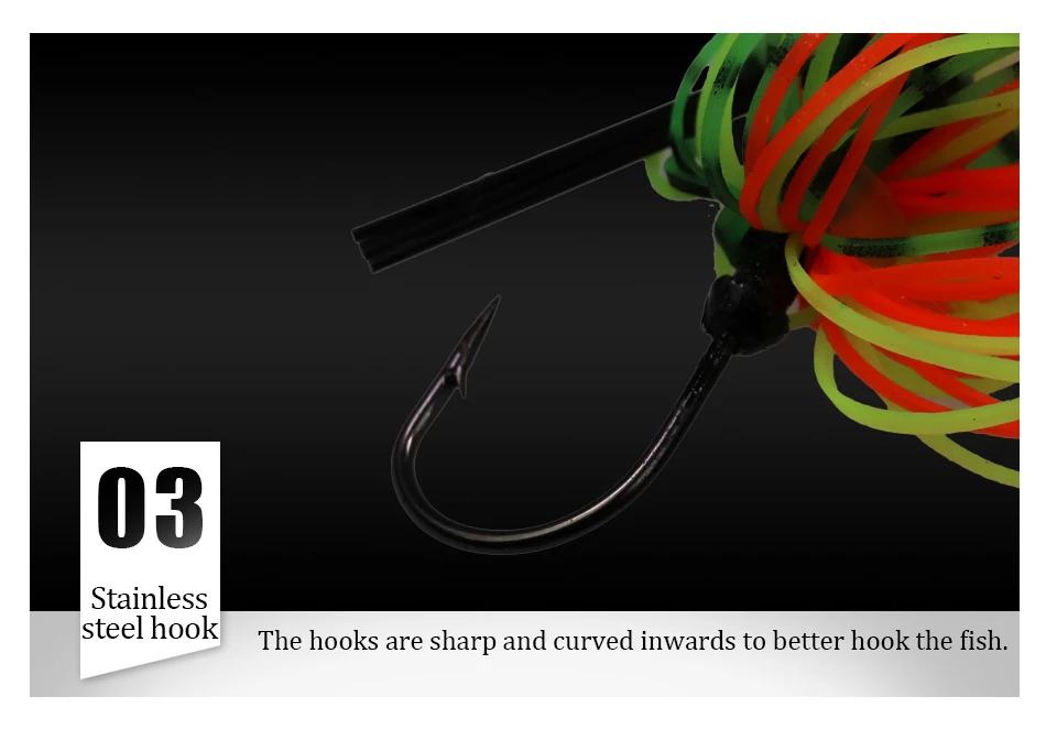3.Cada señuelo incluye un protector contra malas hierbas pesado para ayudar a atravesar la cobertura más fácilmente.Con fuertes anzuelos de alambre y protectores contra malezas, las plantillas de pesca realizan áreas rocosas o malezas.