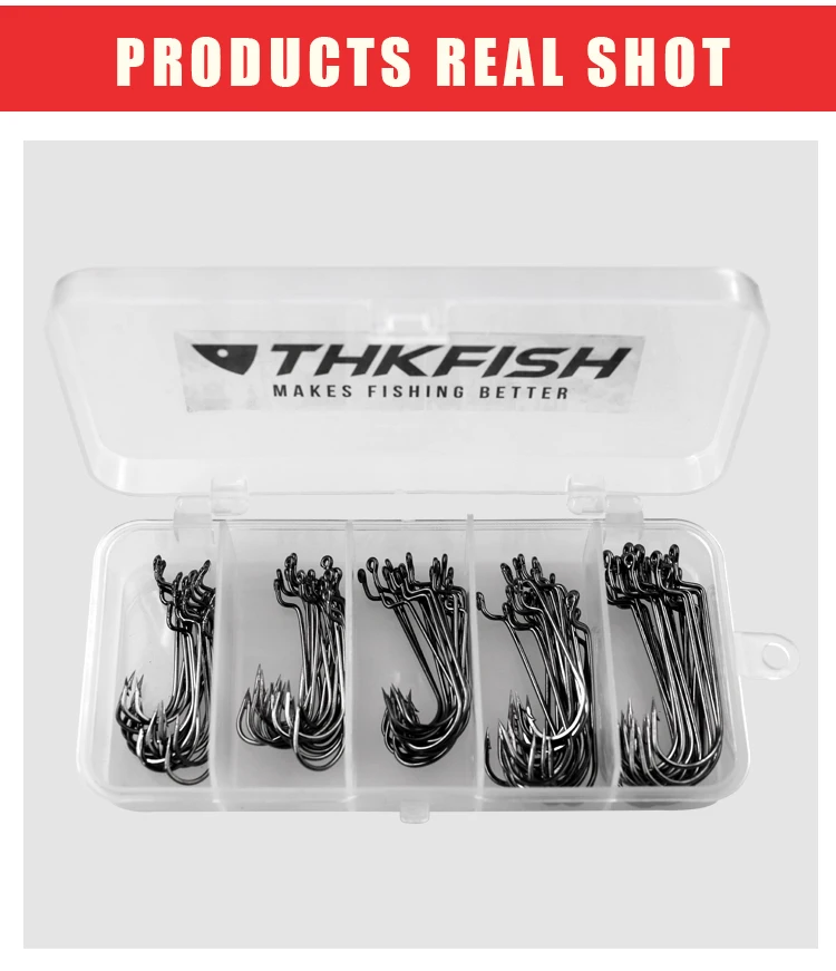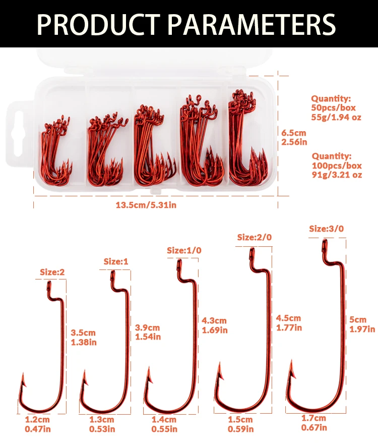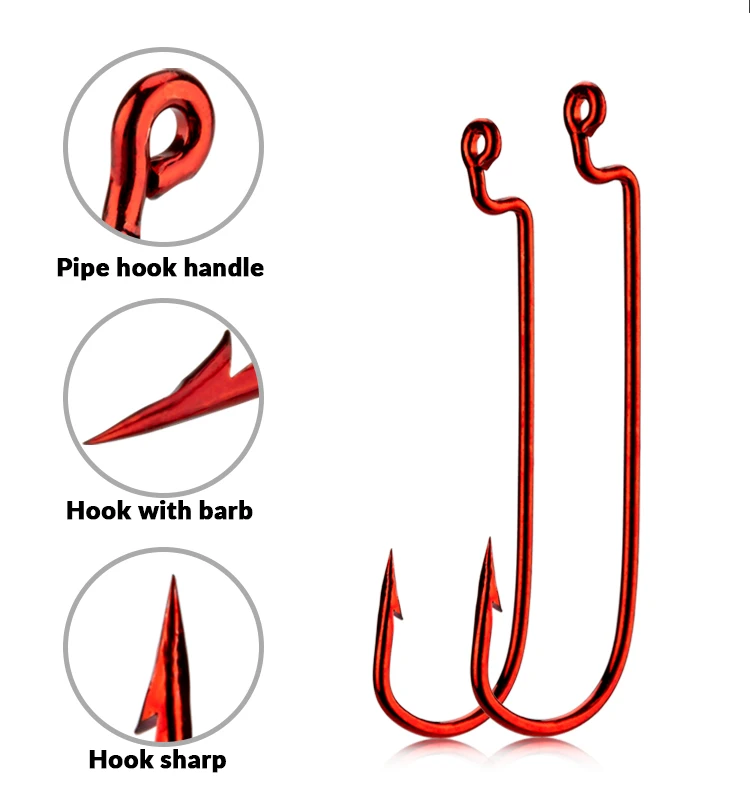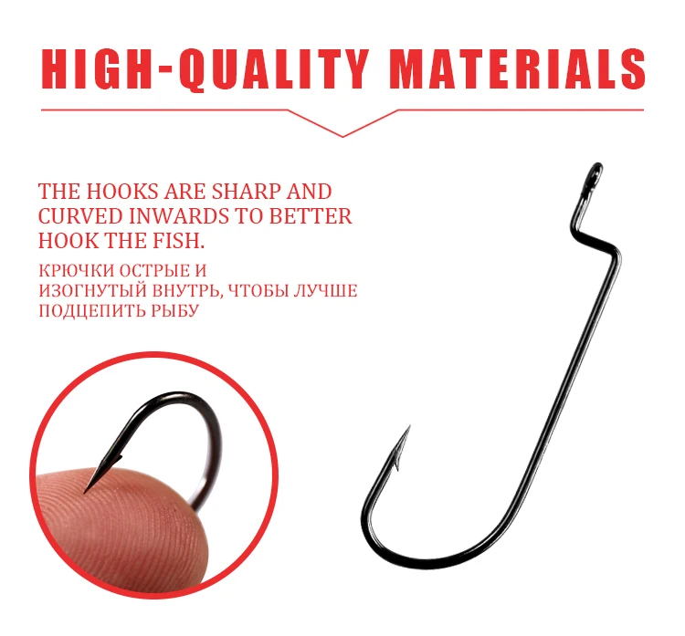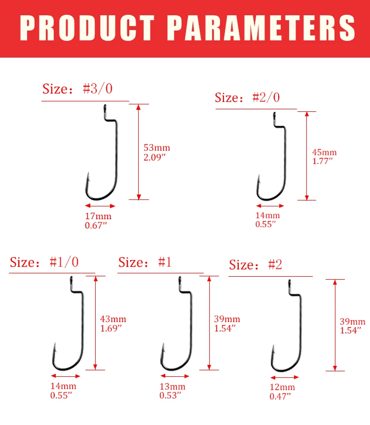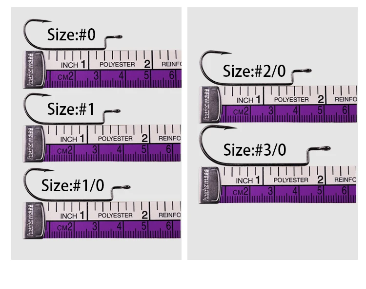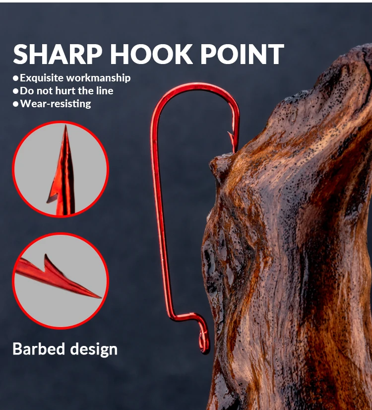2.Perfectos para aparejos de carolina o cuando se requiere una presentación sigilosa, estos anzuelos están diseñados con un vástago desplazado estándar y una curva redonda que crea más espacio entre la punta y el vástago para darle a los peces un área de mordida más grande.