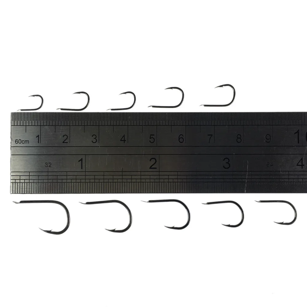 Anzuelo con púas sin párpados afilados: la punta del anzuelo con púas químicamente afilada permite una penetración más profunda, para una menor tasa de mortalidad, manteniendo al pez firmemente plantado cuando intenta correr o saltar de último minuto.
