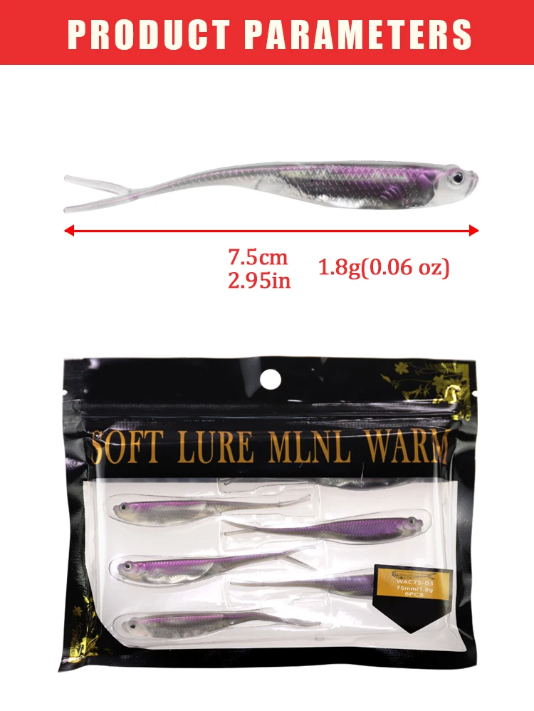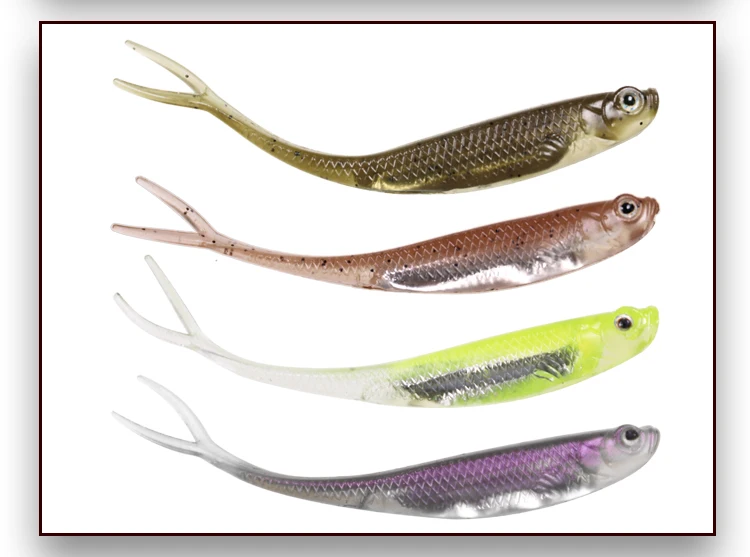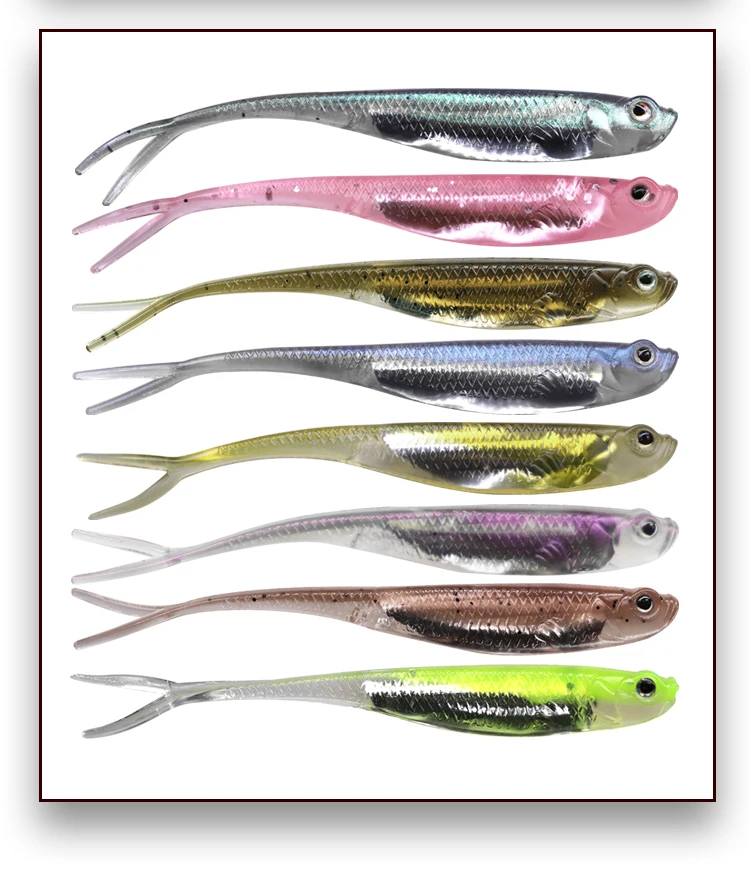3.Diseño de cola dividida: los cebos suaves y jerk cuentan con una cola realista en forma de V que recrea con precisión el movimiento natural de los peces de cebo en presentaciones sutiles, que se ha demostrado que atraen lubinas, así como una variedad de otros peces de caza de agua dulce y salada.