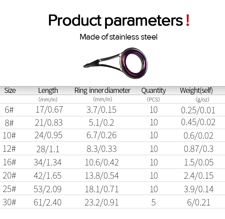 1. Hechos de acero inoxidable y material cerámico de alta calidad, los juegos de guías para cañas de pescar presentan una calidad excelente y un diseño de cuerpo notable.