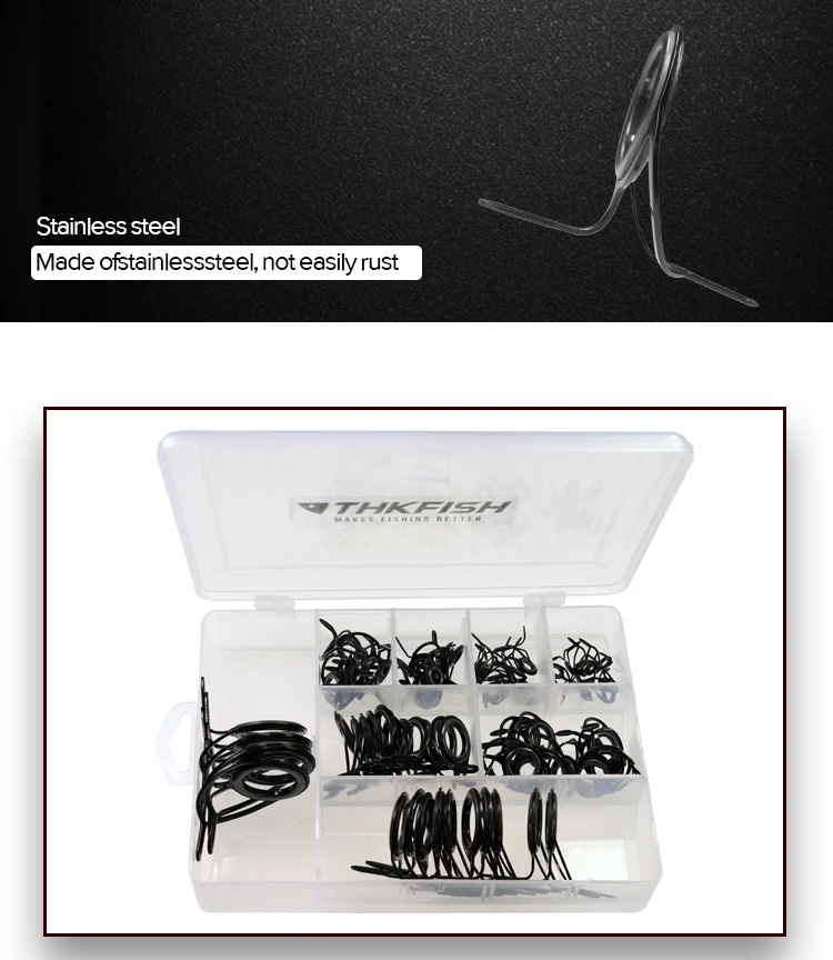 5.Maravilloso kit de reparación de cañas de pescar: material: acero inoxidable y cerámica.Color: negro.