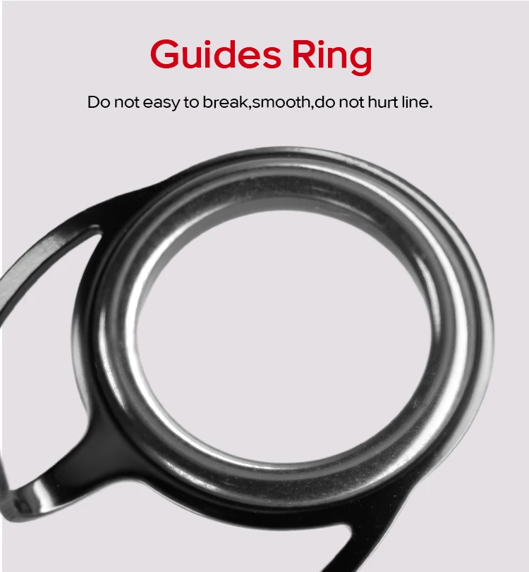1.Guías de varilla resistentes y sensibles a la luz: con marco de acero inoxidable y anillo de cerámica resistente al desgaste, resistente y duradero.Hace que la luz de su caña de pescar sea sensible y fuerte.Las guías ligeras de la caña hacen que la caña de pescar sea más sensible, extremadamente cómoda y liviana.