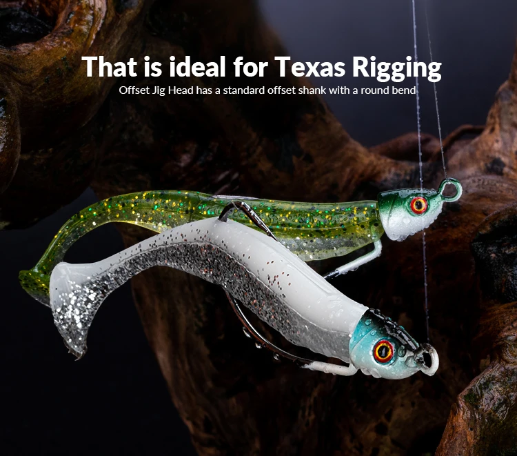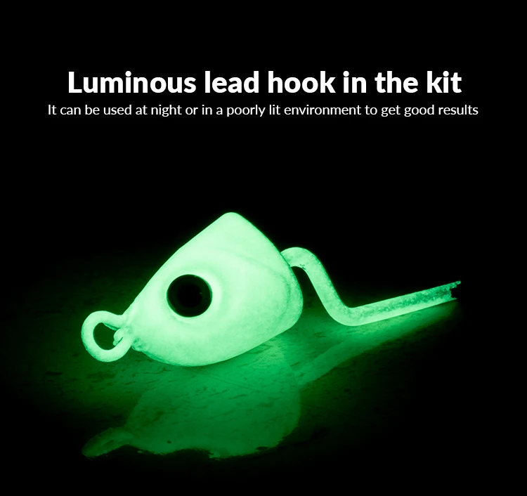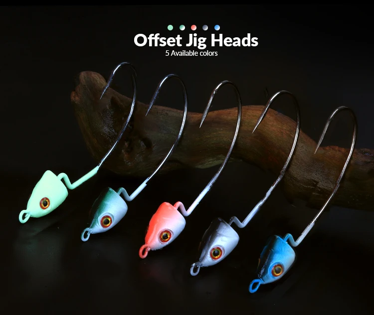 El paquete incluye: 5 anzuelos de pesca con cabeza de plantilla.