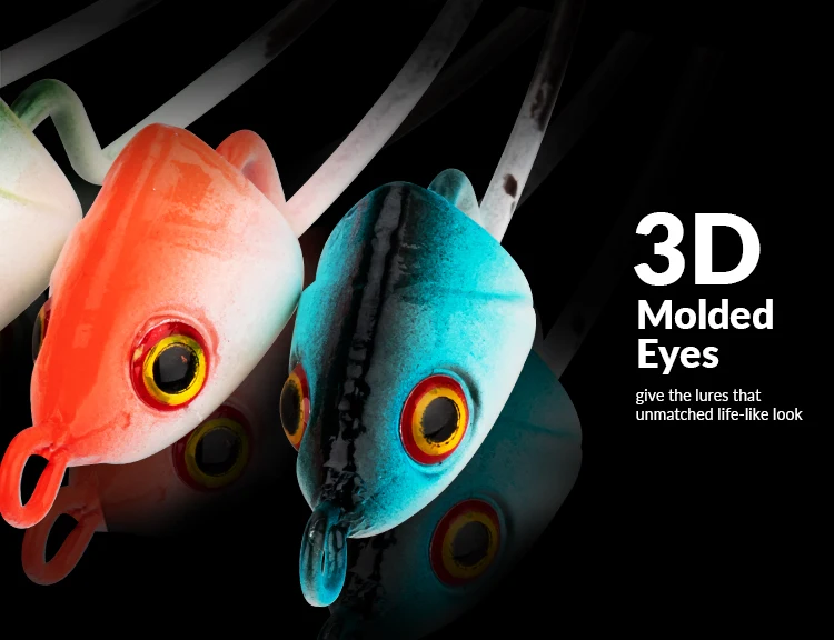 3.Diseño realista de cabeza de pez: el diseño realista de cabeza de pez 3D hace que estas heads de plantilla nadan atractivos en el agua, lo que puede atraer más peces por venir;Además, la cabeza de pez con peso puede ayudar a que los anzuelos entren en el agua rápidamente y pasen fácilmente a través de la barrera.