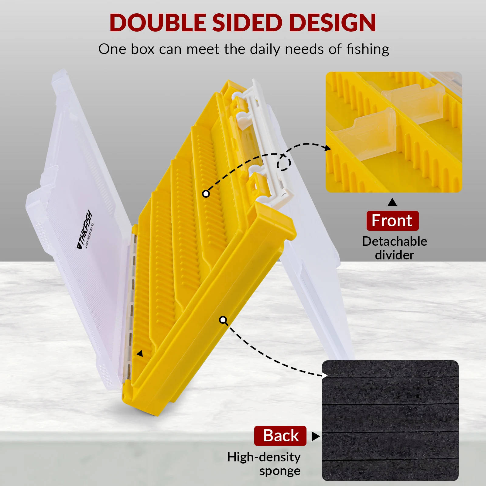 2. Diseño de detalle único: tapa de plástico translúcido para una identificación rápida y sencilla del contenido. El diseño granular evita que el cebo blando se pegue a la tapa y evita que el cebo se caiga mientras se abre la caja de pesca terminal.El pestillo de seguridad grande en ambos lados es sólido y duradero, no tiene que preocuparse por dañarse y romperse fácilmente o que se resbale el aparejo de pesca.Combinado con ejes de junta pasante de acero inoxidable para una apertura y cierre más suaves.