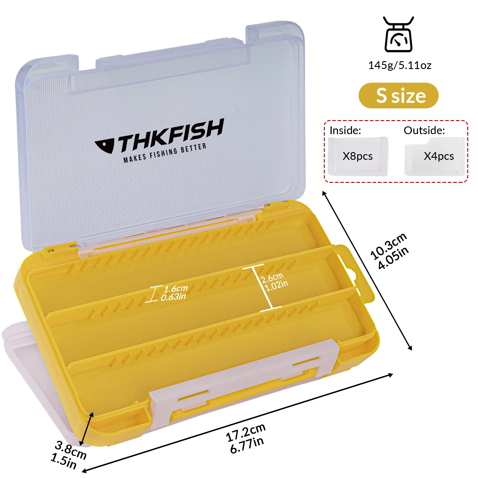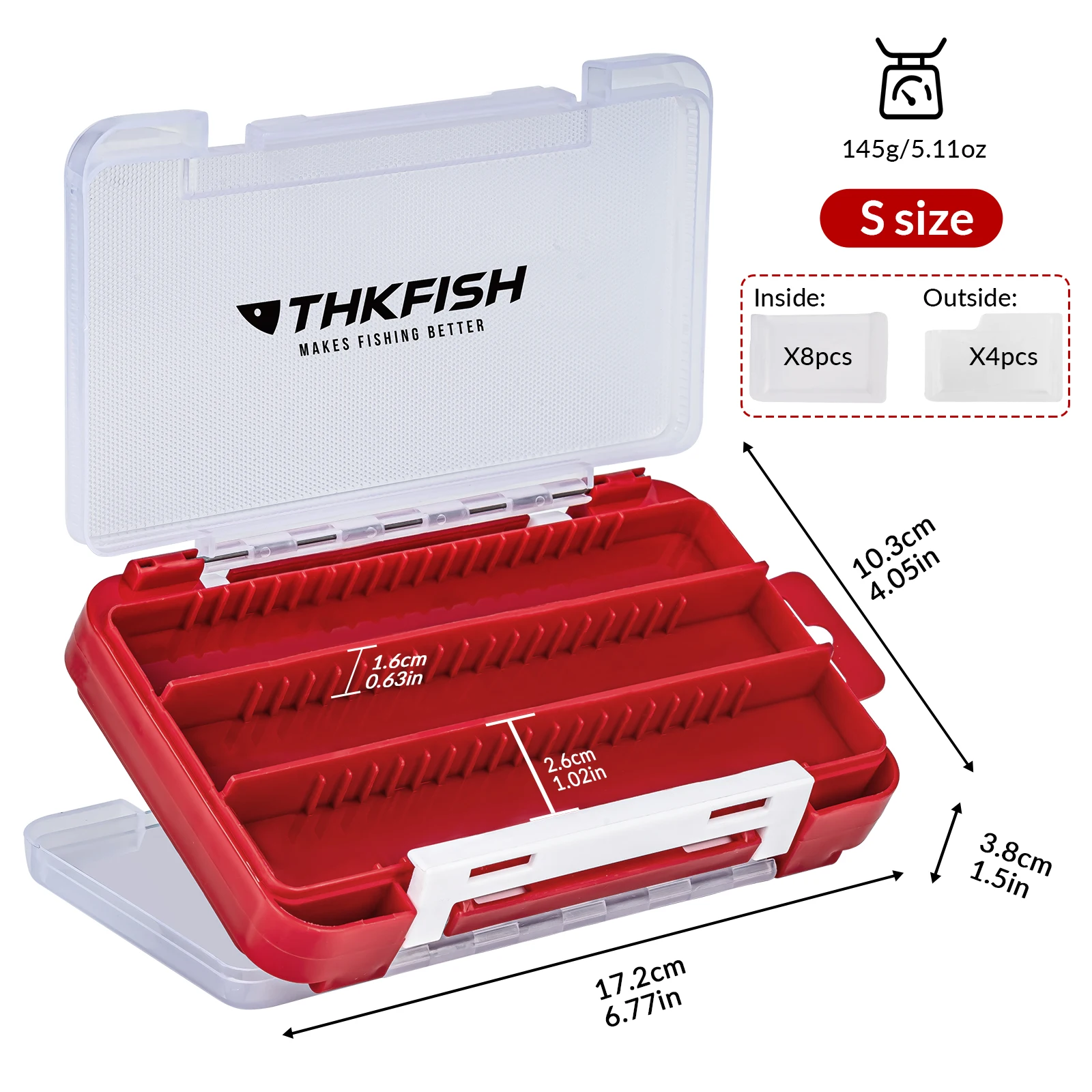 3. Tamaño perfecto para llevar: S: 6,77" L x 4,05 " W x 1,5" H. Estos pequeños organizadores de aparejos están diseñados para ser fáciles de transportar. Puedes guardarlos en tu mochila de pesca, bolso bandolera e incluso en el bolsillo del chaleco. La caja de aparejos viene con una pestaña que puedes colgarla o atarla en cualquier lugar. La tapa encaja perfectamente con la caja, evitando efectivamente la confusión causada por pequeños objetos que se mueven entre los compartimentos cuando se agita la caja.