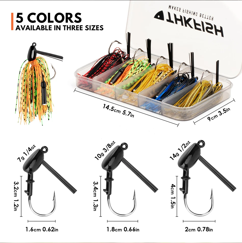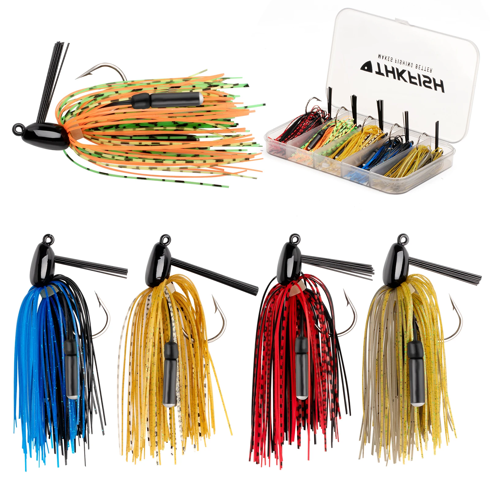 THKFISH-Cebo de alambre con cabeza de plantilla de 5 piezas, 7g, 10g, 14g, Spinner, falda de silicona, señuelos de plantilla, cebos de chat, gancho de púas para lubina
