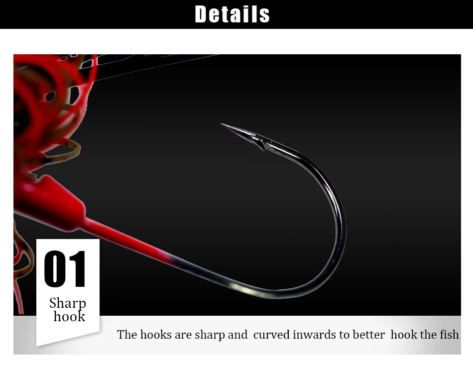 Weed Guard Design Each Lure includes heavy weed guard to help come through cover easier. With Strong Wire Hooks and Weed Guards the Fishing Jigs Perform Rocky or Weedy areas
