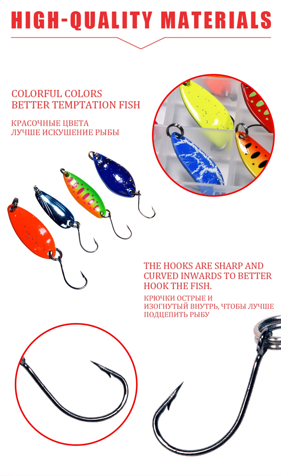 1. El señuelo de cuchara de pesca está hecho de metal de alta calidad.