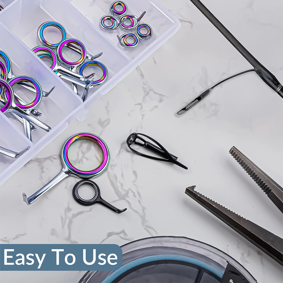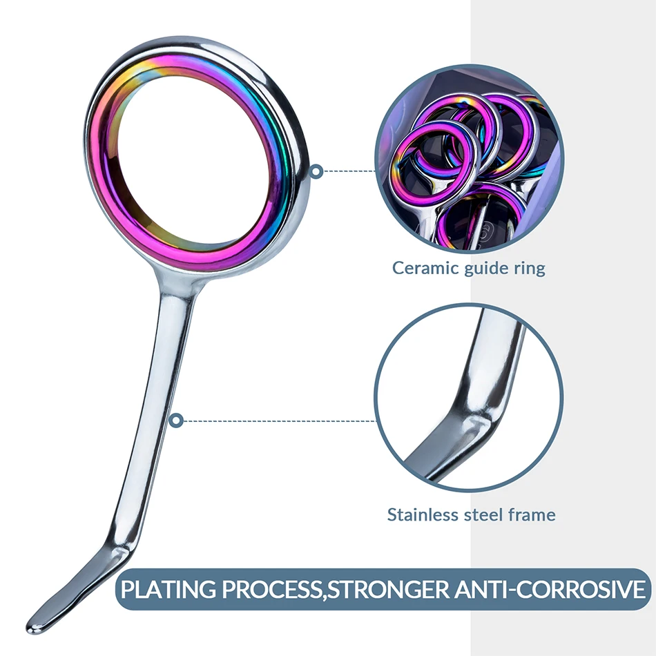 Kit de reparación de puntas de varilla premium:Guías de varilla de cerámica y acero inoxidable de primera calidad. Con marco de acero inoxidable y anillo de cerámica resistente al desgaste, resistente y duradero.¡Dale vida al equipo antiguo!¡Herramientas maravillosas para los amantes de la pesca!