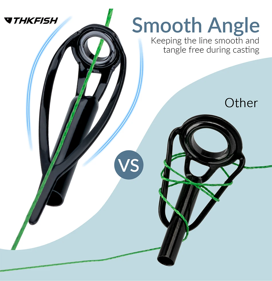 Diseño liviano y resistente a enredos:Su diseño liviano y su estructura acampanada resistente a enredos es ideal para todo tipo de caña de pescar.La guía de caña más suave reducirá en gran medida la posibilidad de dañar su hilo de pescar.Los marcos y guía de acero inoxidable funcionan muy bien con todos los fluorocarbonos, monofilamentos y líneas trenzadas.