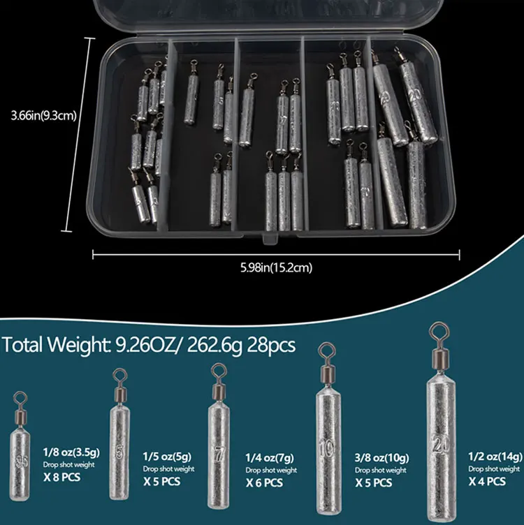 THKFISH-Kit de pesas de pesca, 28 Uds., 3,5g, 5g, 7g, 10g, 14g, 20g, plomo, Kit de pesas de tiro, colgante de cables de pesca