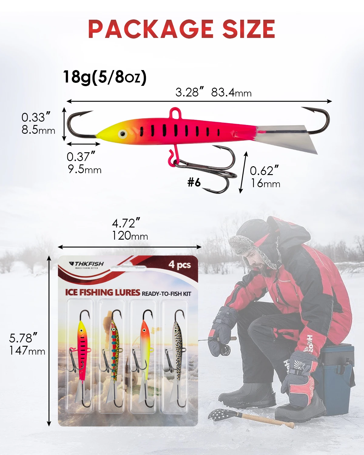 🐟COLORES VIVOS ATRACTIVOS: Los colores vívidos de estas plantillas de pesca en hielo brindarán una respuesta increíble y serán más atractivos para los objetivos de pesca. Gran señuelo para jigging vertical para bajos profundos de 50 a 80 pies de profundidad. A veces mejor que una cuchara. Peso: 10g (0,36 oz) 18g (0,65 OZ).