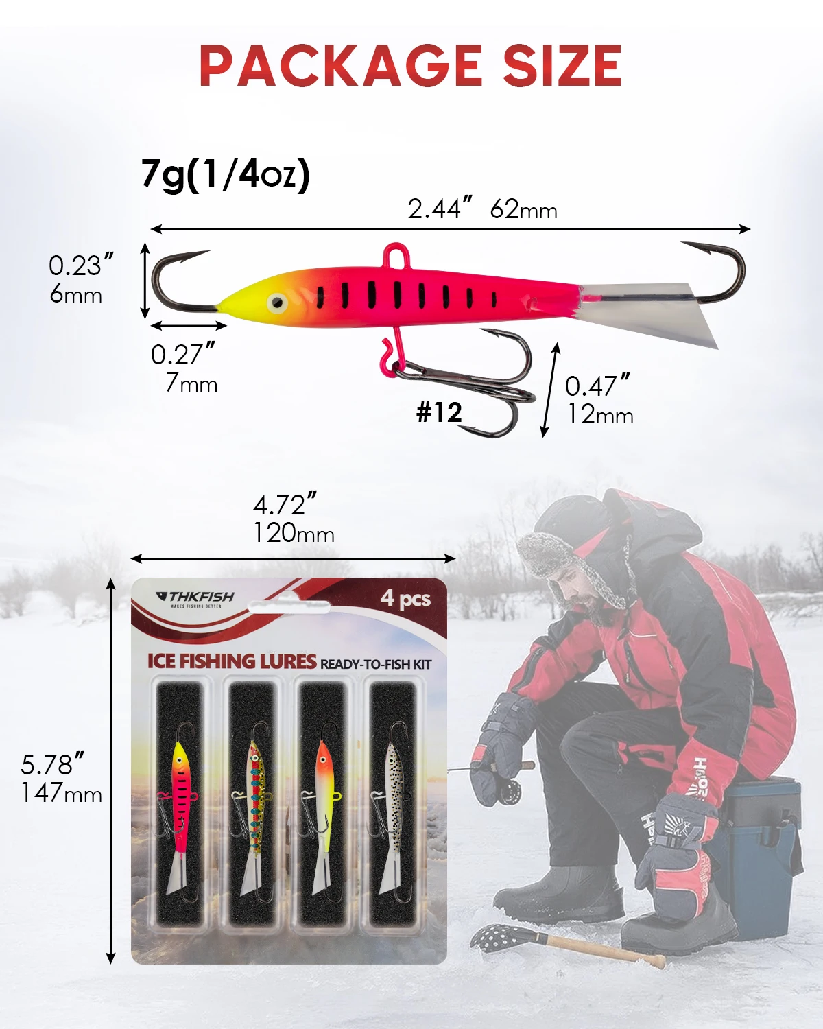 🐟KIT MULTISELECTIVO DE PLANTILLA DE HIELO: El paquete incluye 4 piezas de diferentes colores de plantillas de pesca en hielo. Disponible en varios tamaños: 7g(1/4oz), 10g(3/8oz), 18g(1/3oz), 21g(3/4oz). Consulte la imagen para conocer el tamaño específico. Si tiene algún problema, póngase en contacto con nuestro servicio de atención al cliente y le responderemos en 24 horas.