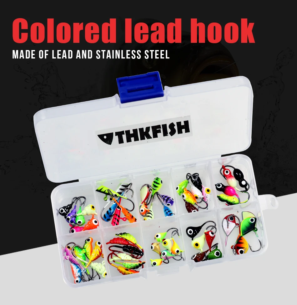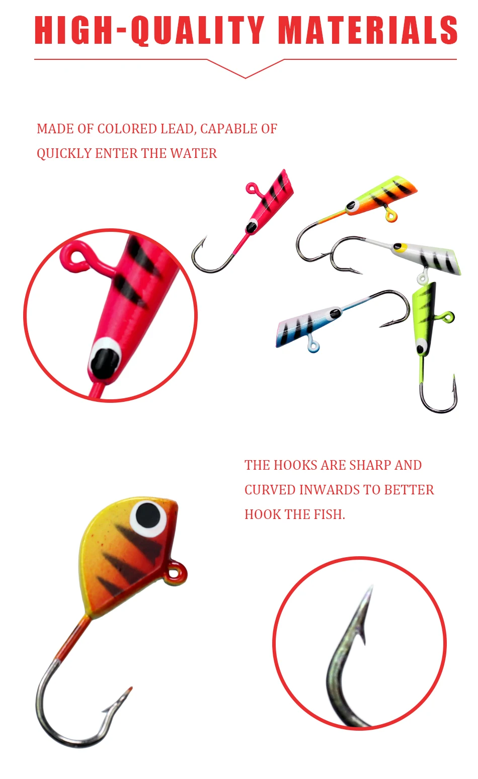 【Forma de gota de agua para pesca en hielo】forma de gota de agua y material de plomo.10 tipos diferentes de plantilla de pesca, total 54 piezas.