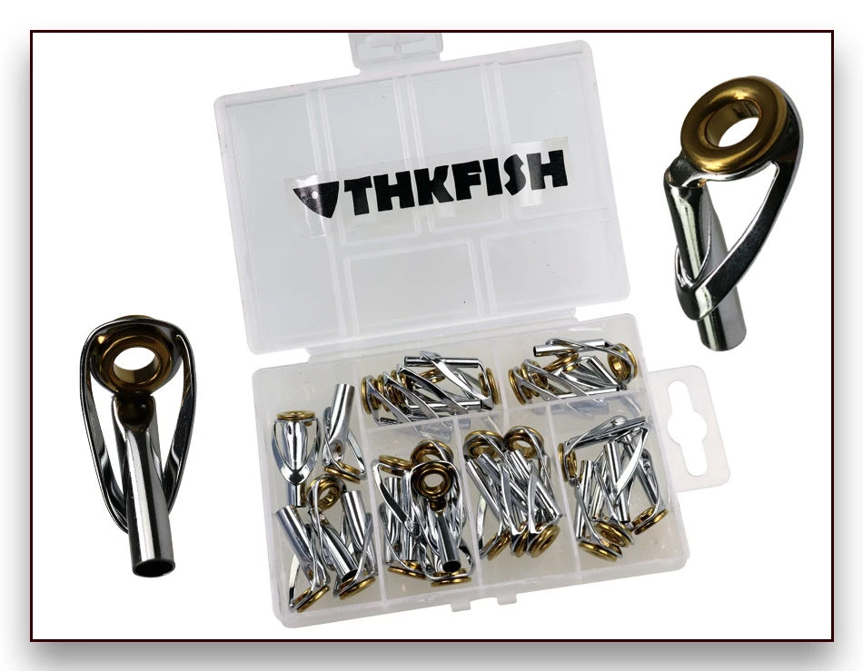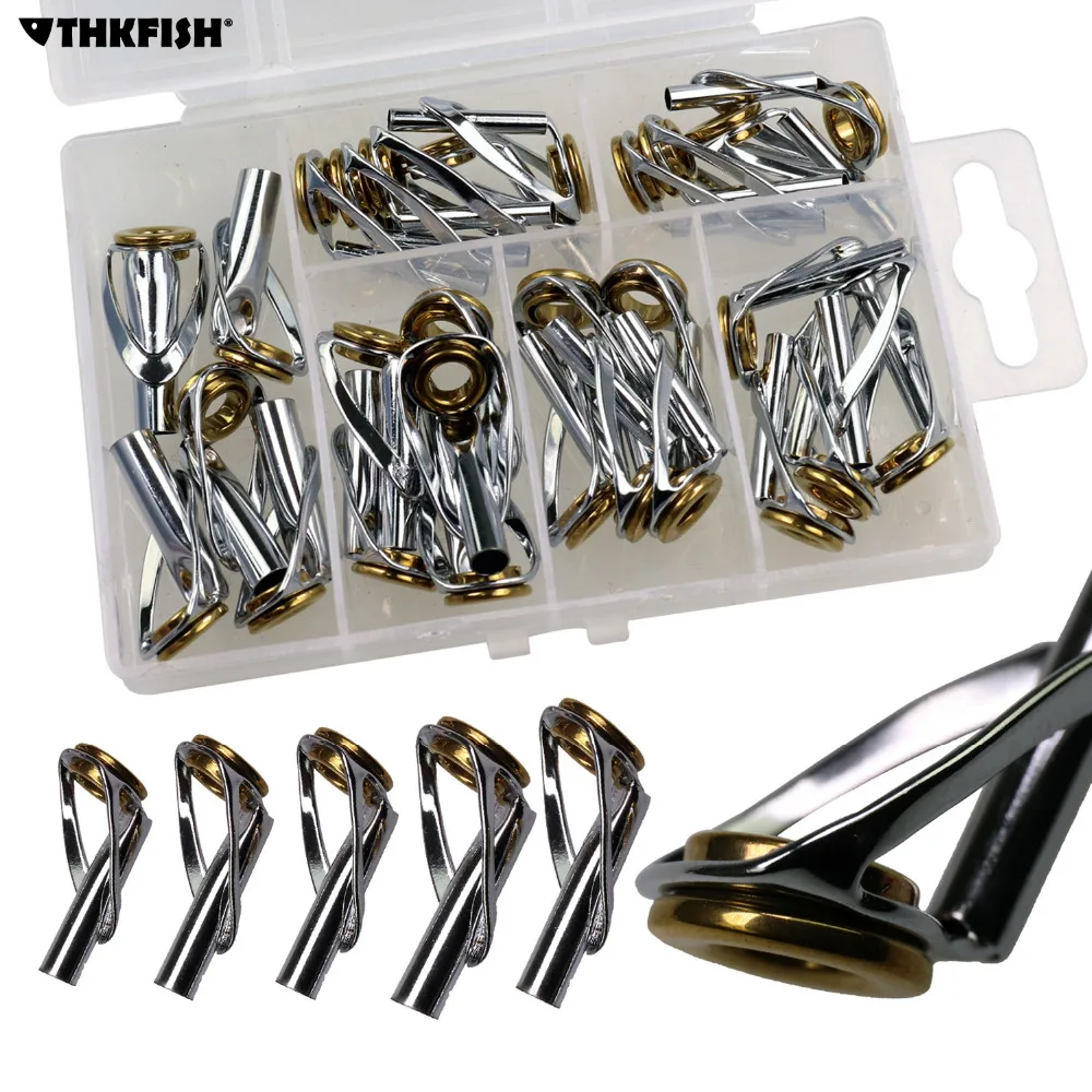THKFISH-Kits de guías de caña de pescar, 30 Uds., 3,0mm-5,5mm, doble anillo de cerámica dorada, Kit de reparación de puntas de pesca de alta resistencia para agua salada