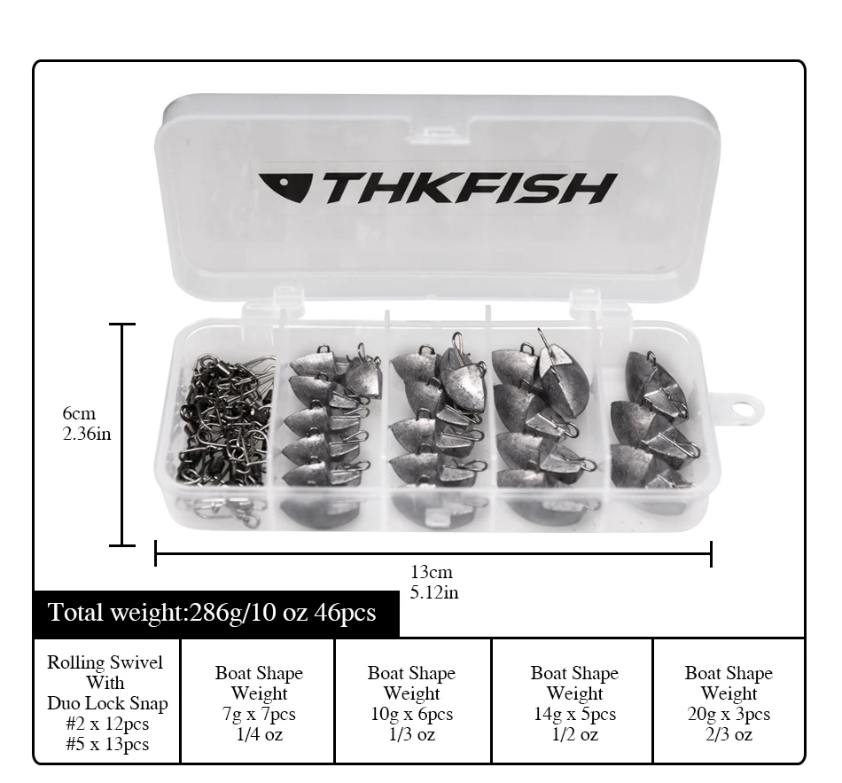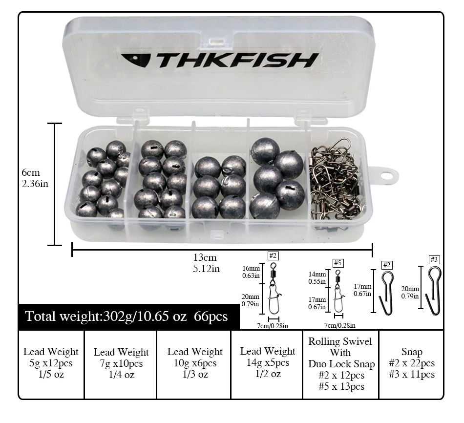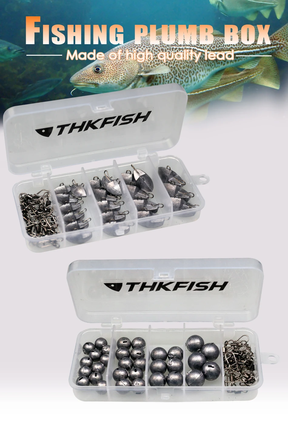 THKFISH-Kits de plomos de pesca, 66 Uds., 5g, 7g, 10g, 14g, 20g, 46 Uds., colgante redondo, plomo para señuelo, peso de pesca, juego Dropshot