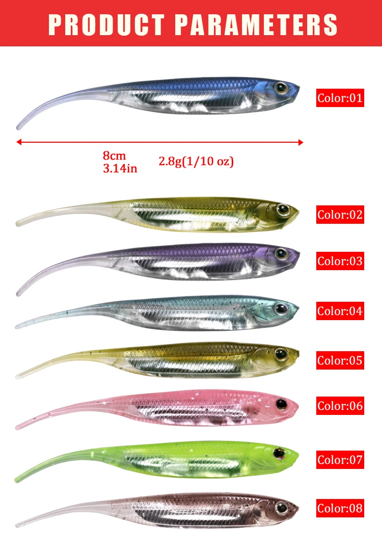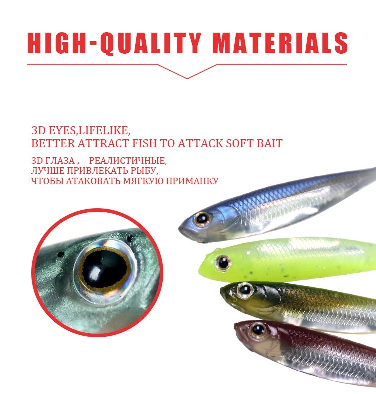 2.El cebo blando viene con ojos 3D y el cuerpo del cebo realista hace que su pesca sea mucho más fácil.