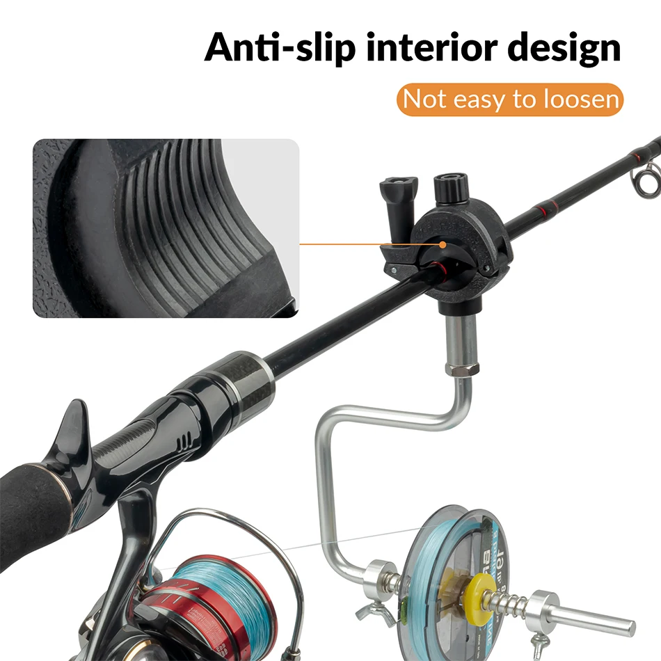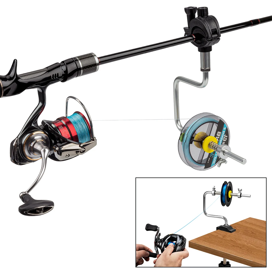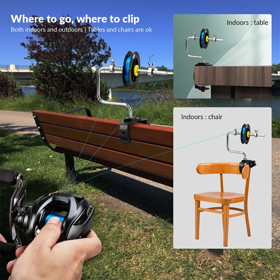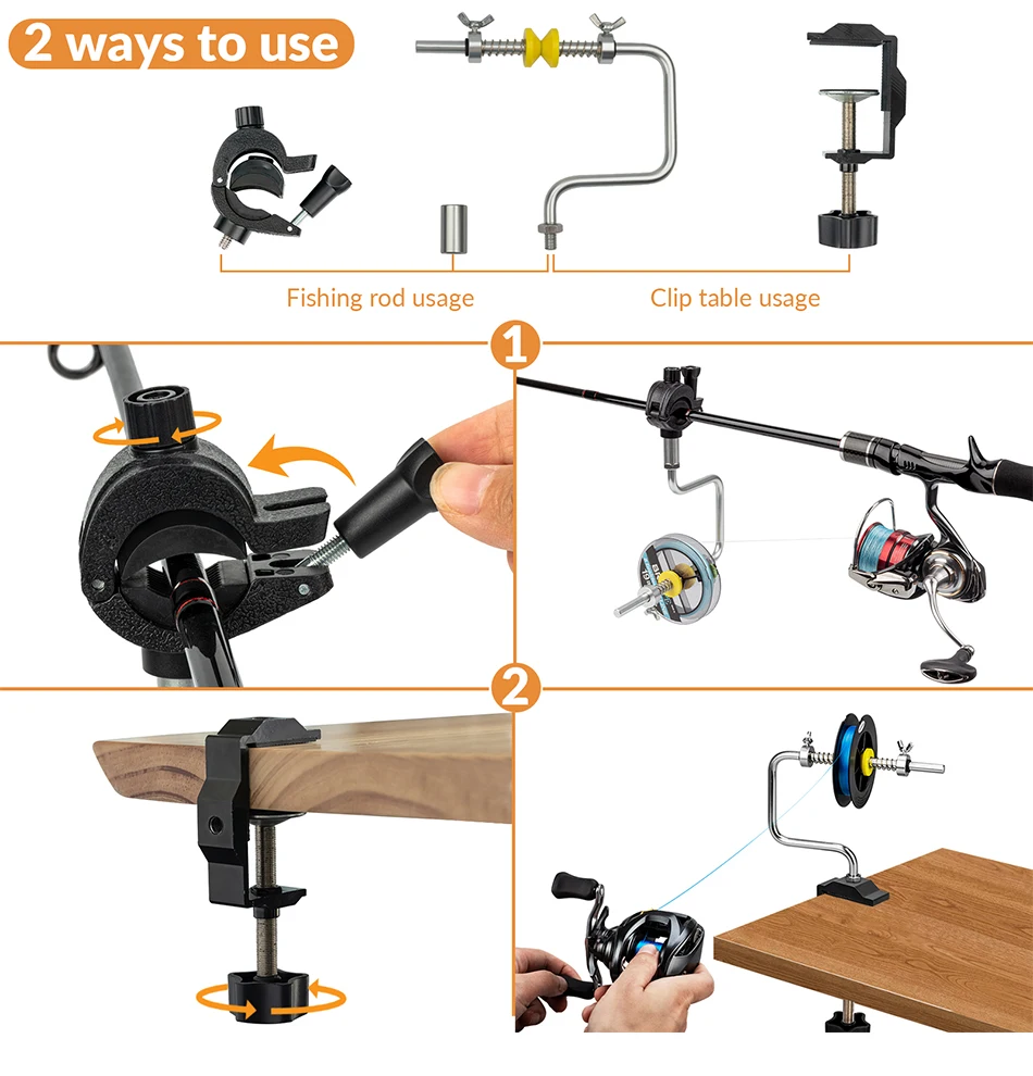 Aplicación multiescena: nueva actualización. La abrazadera de varilla y la abrazadera de mesa, los dos estilos cumplen con todos los escenarios de uso de los pescadores. Puede fijar el carrete de línea a su varilla y enrollar la nueva línea directamente en el carrete (bajo tensión). También se puede conectar a la tabla y no se requiere ninguna ayuda de sus socios. Ya sea en casa, en barcos o básicamente en cualquier lugar, puede tomar y usar fácilmente Este enrollador de línea de pesca. El carrete de sedal te permite enrollar tu sedal de forma rápida y eficiente.