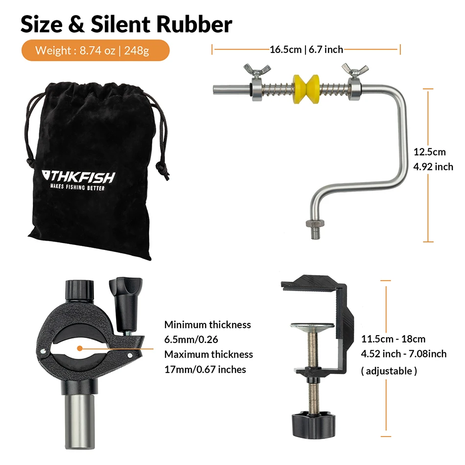 Gran incorporación al equipo de pesca: Abrazadera para carrete de sedal: la abrazadera para carrete puede sujetar la caña desde 0,26 "(6,5mm)-0,67"(17mm) de diámetro. Spooler-abrazadera de mesa para sedal: la abrazadera de spooler line puede sostener el grosor máximo de 2,44 "(62mm). El spooler es muy fácil de montar y el truco es comenzar lentamente, y luego enrollar gradualmente el cable a una velocidad uniforme. Absolutamente ninguna línea gira en carretes.