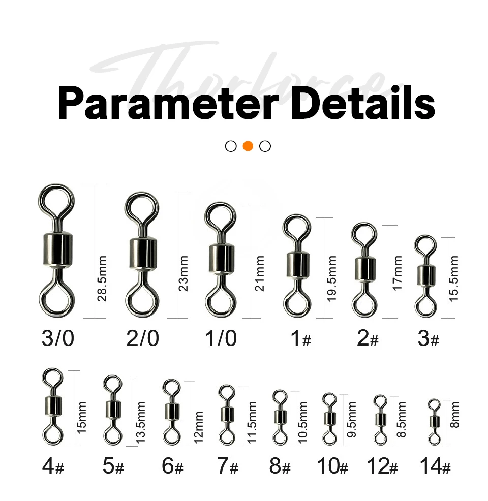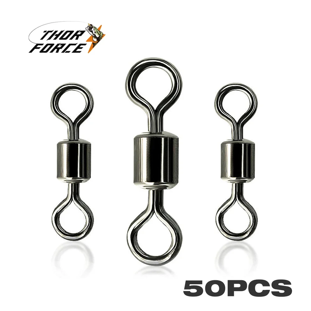 THORFORCE 50 Uds conector de pesca giratorio anillo sólido señuelos anzuelos de pesca de acero inoxidable herramienta de accesorios de rodamiento de barril