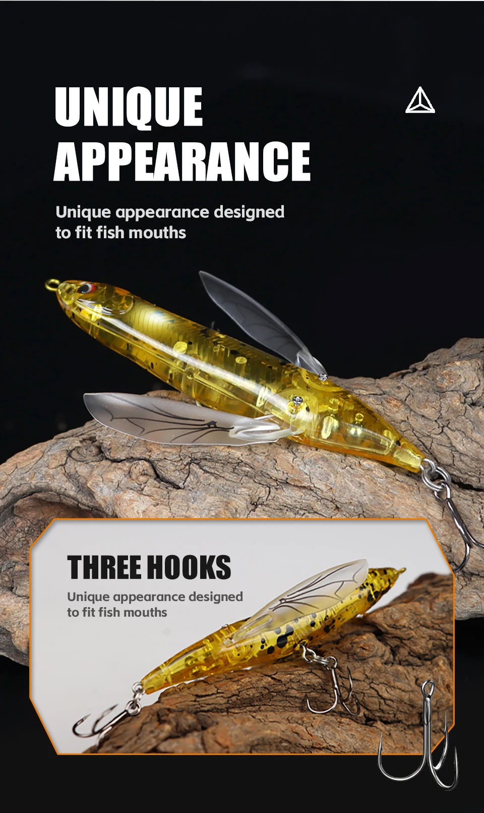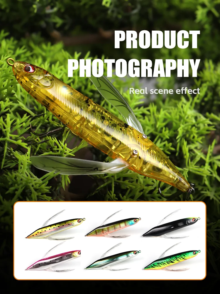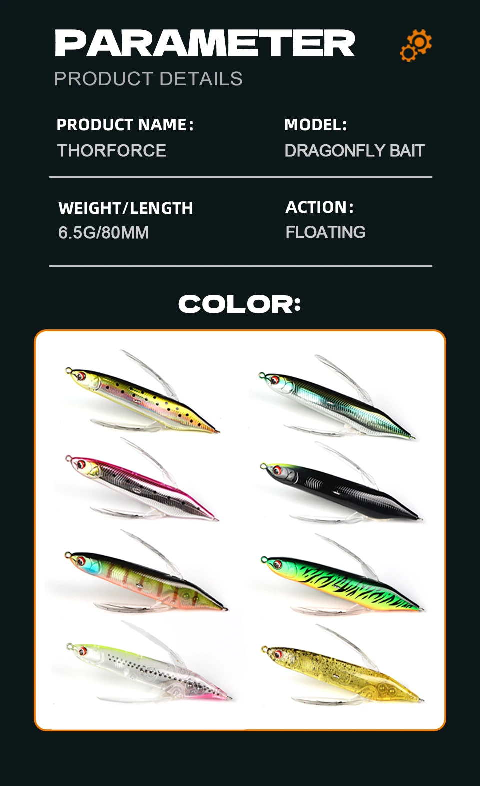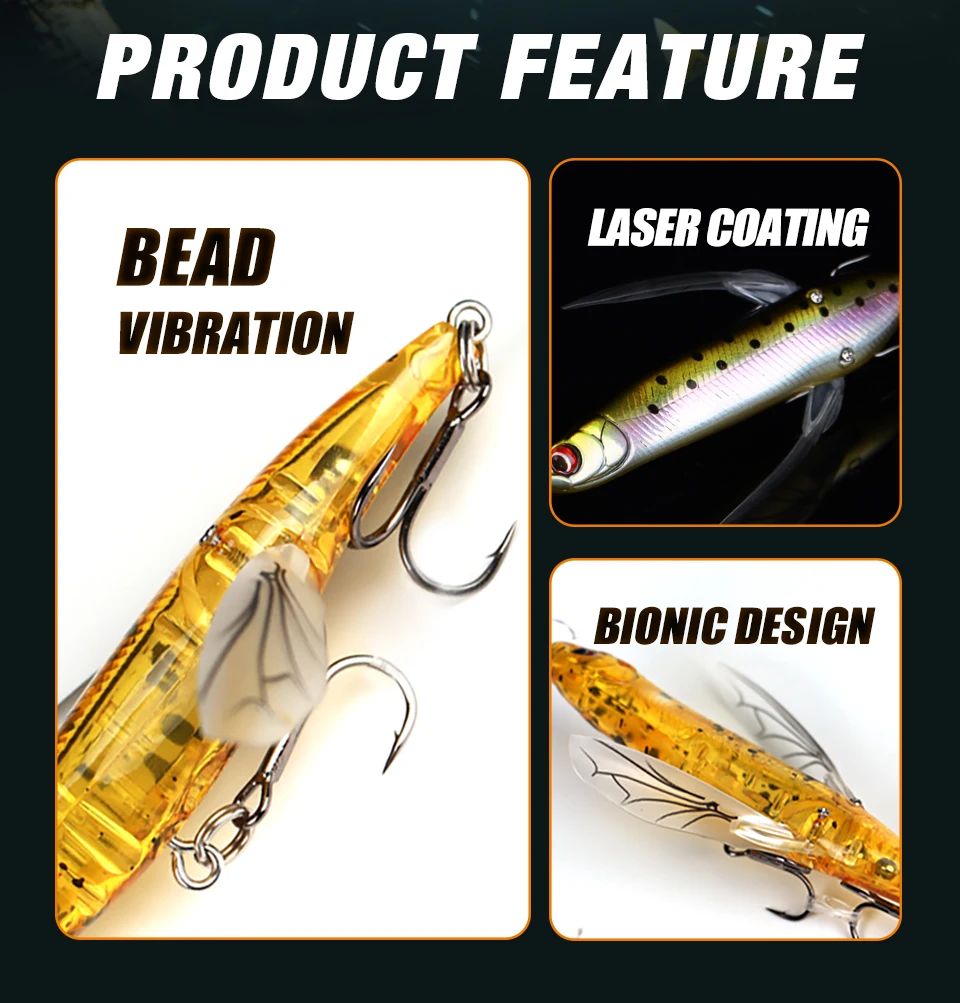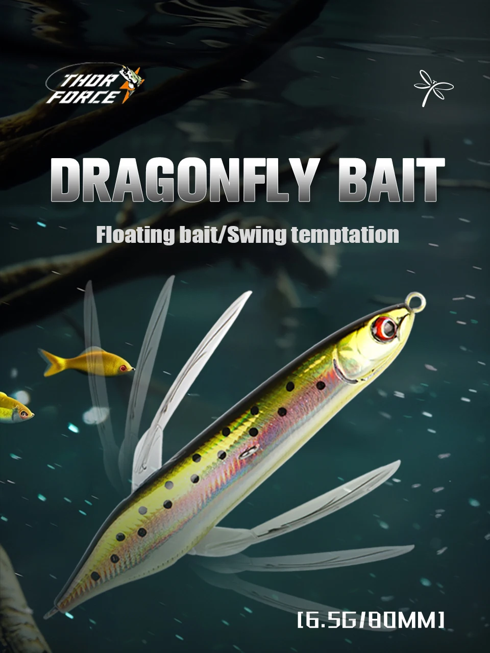 THORFORCE-cebo de pececillo de libélula, 80MM, 6,5G, Señuelos de pesca en superficie, Wobblers flotantes, señuelo de insectos con alas, lápiz, Lucio