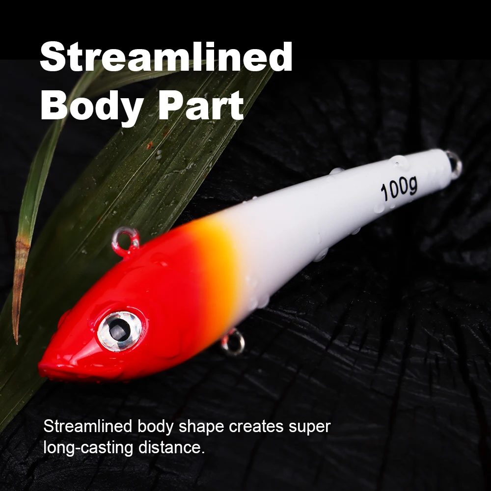 1.Cuerpo de pez aerodinámico.Aumente la distancia de lanzamiento, reduzca la resistencia al agua y tenga una velocidad más rápida.