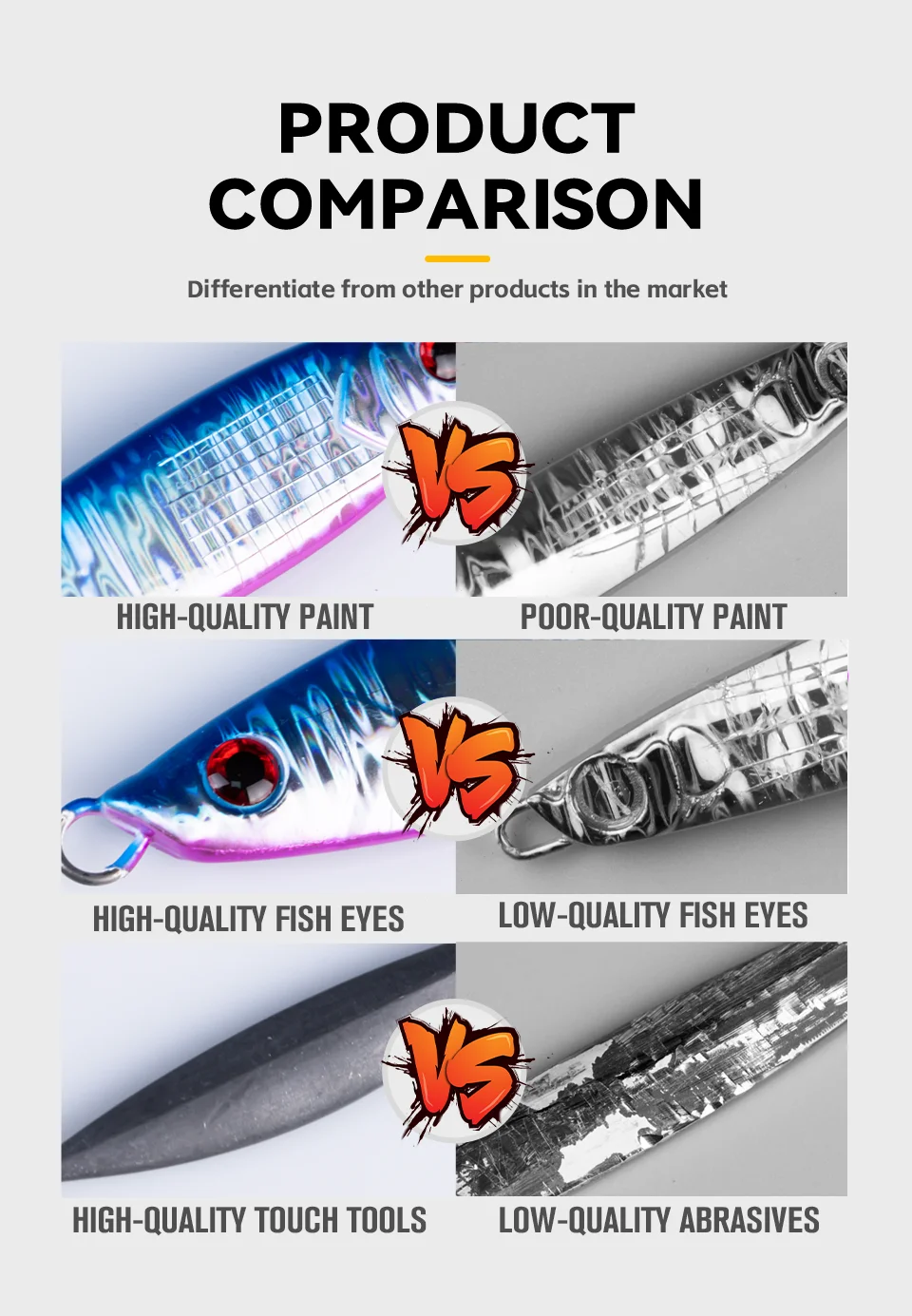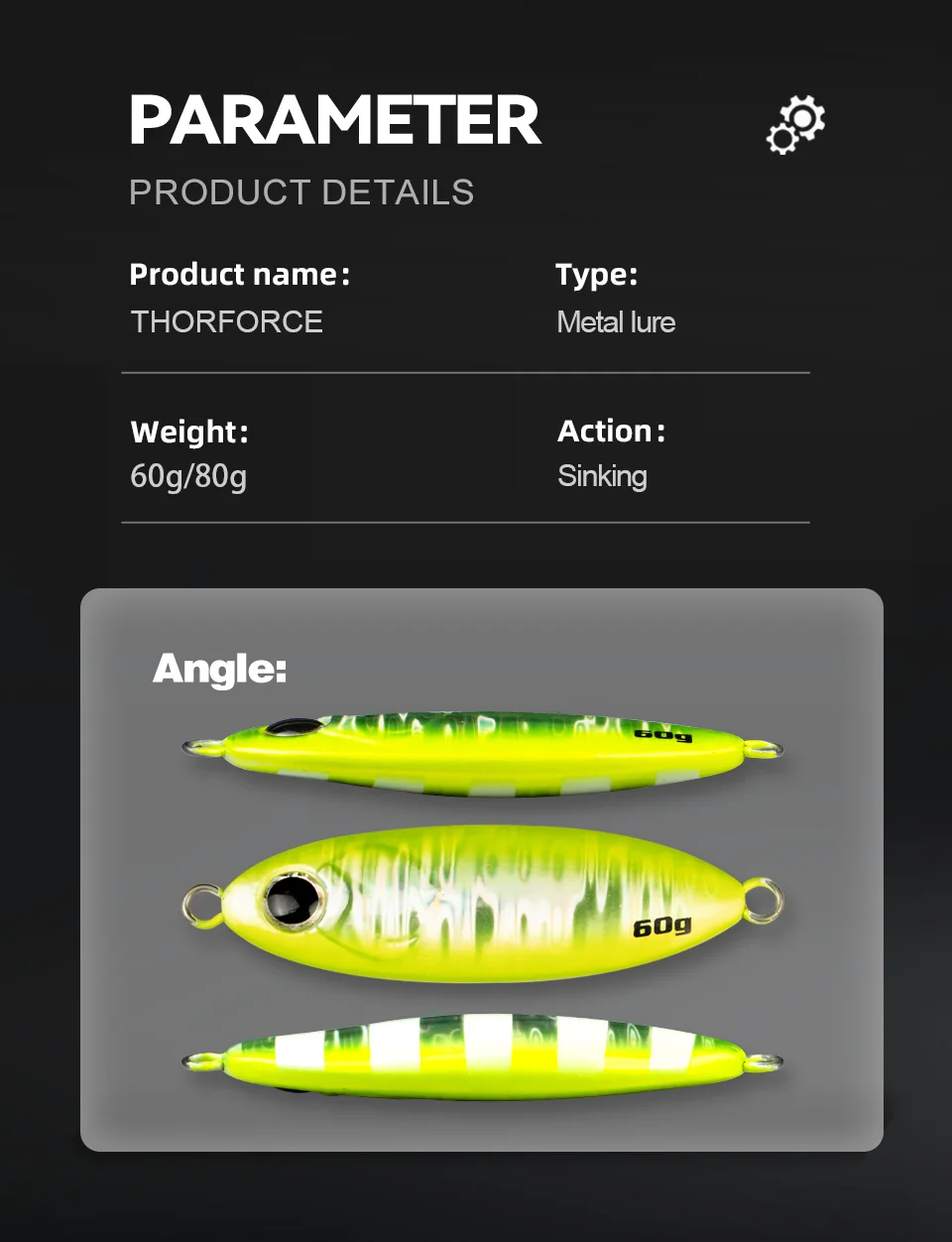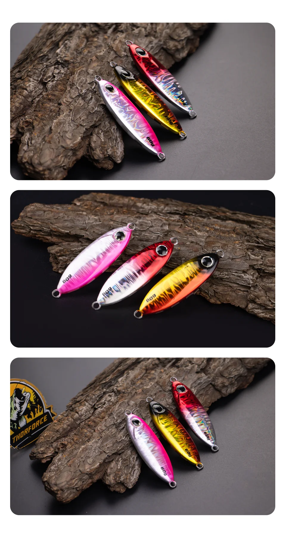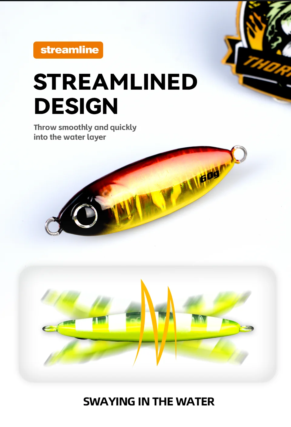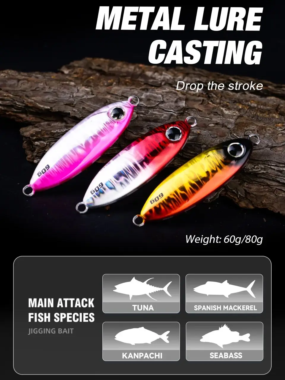 Disponibles en opciones de 60 y 80 g, estos jigs satisfacen diversas necesidades de pesca, ya sea que esté apuntando a aguas poco profundas o especies de aguas profundas.