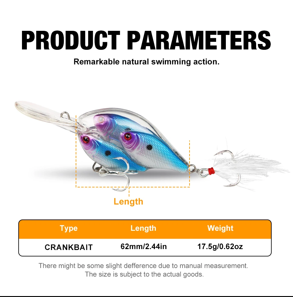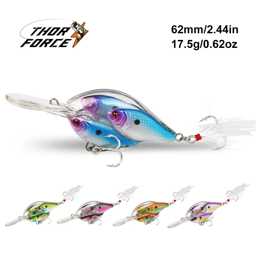 THORFORCE-señuelo de pesca Crankbait, 62mm, 17,5g, manivelas, Wobblers, curricán, cebo Artificial duro, Lucio, lubina, perca