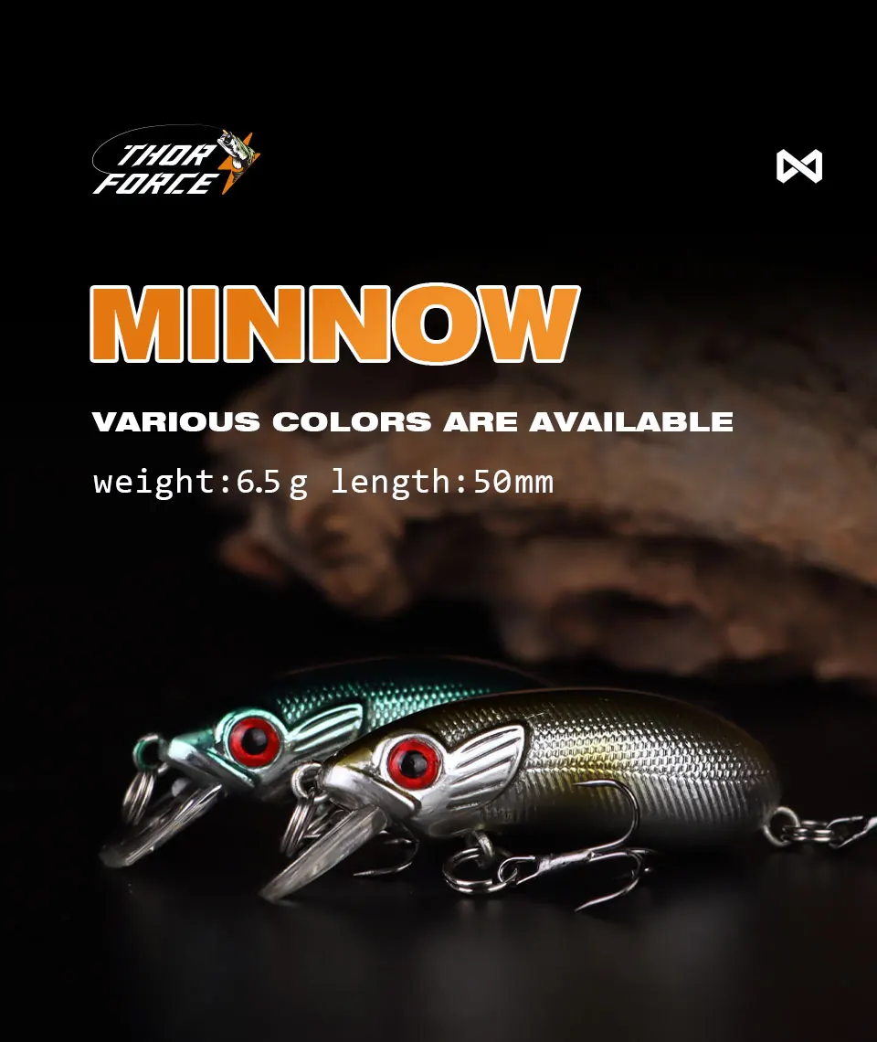 THORFORCE-señuelo de pesca Crankbait Minnow, 50MM, 6,5G, Wobblers, cebo duro Artificial flotante, señuelo de lubina de mar, aparejos de pesca de plástico