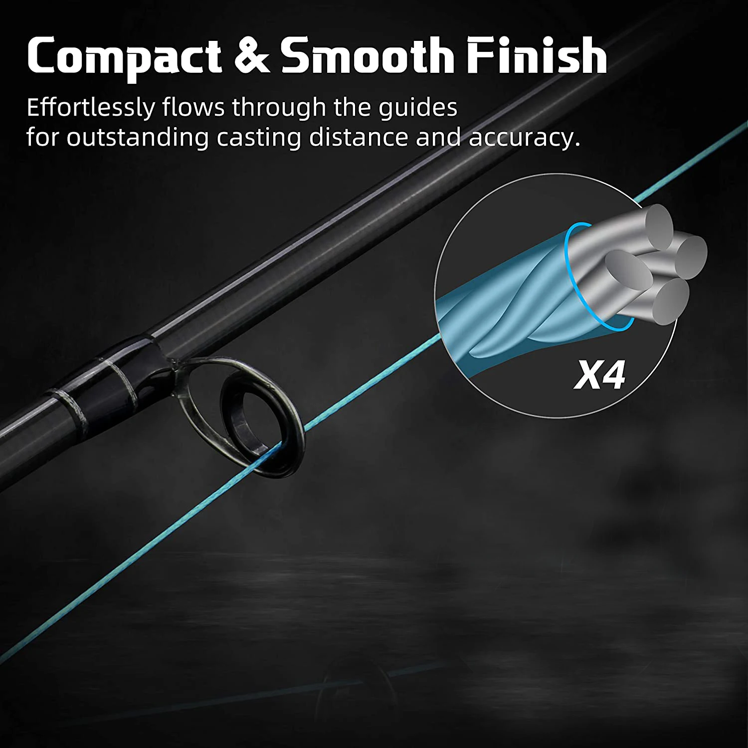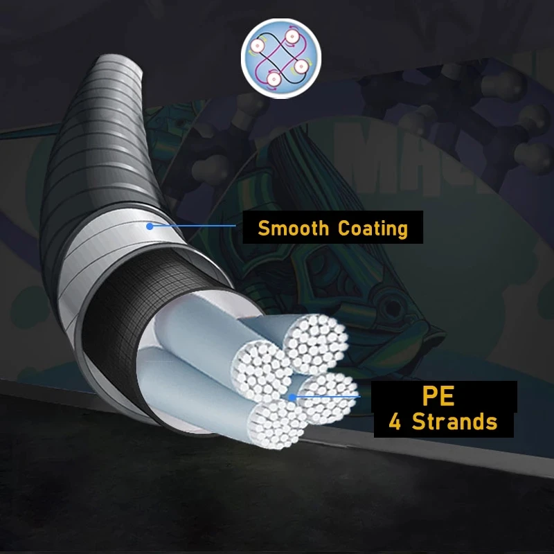 Línea de PE de 4 hebras, material de Japón, construcción trenzada única, hecha de fibras de PE de resistencia ultraalta