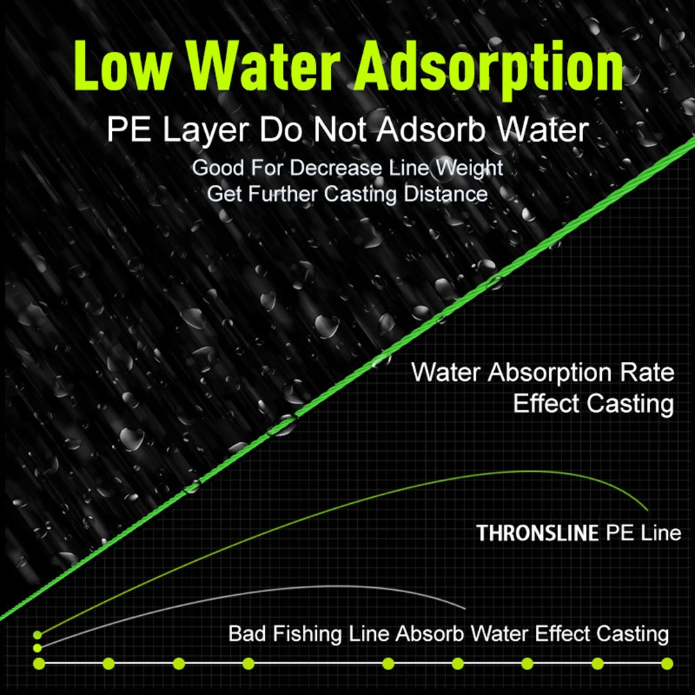③ La línea trenzada de filamento súper Delgado ofrece una vida útil mucho más larga que otras trenzas Premium.