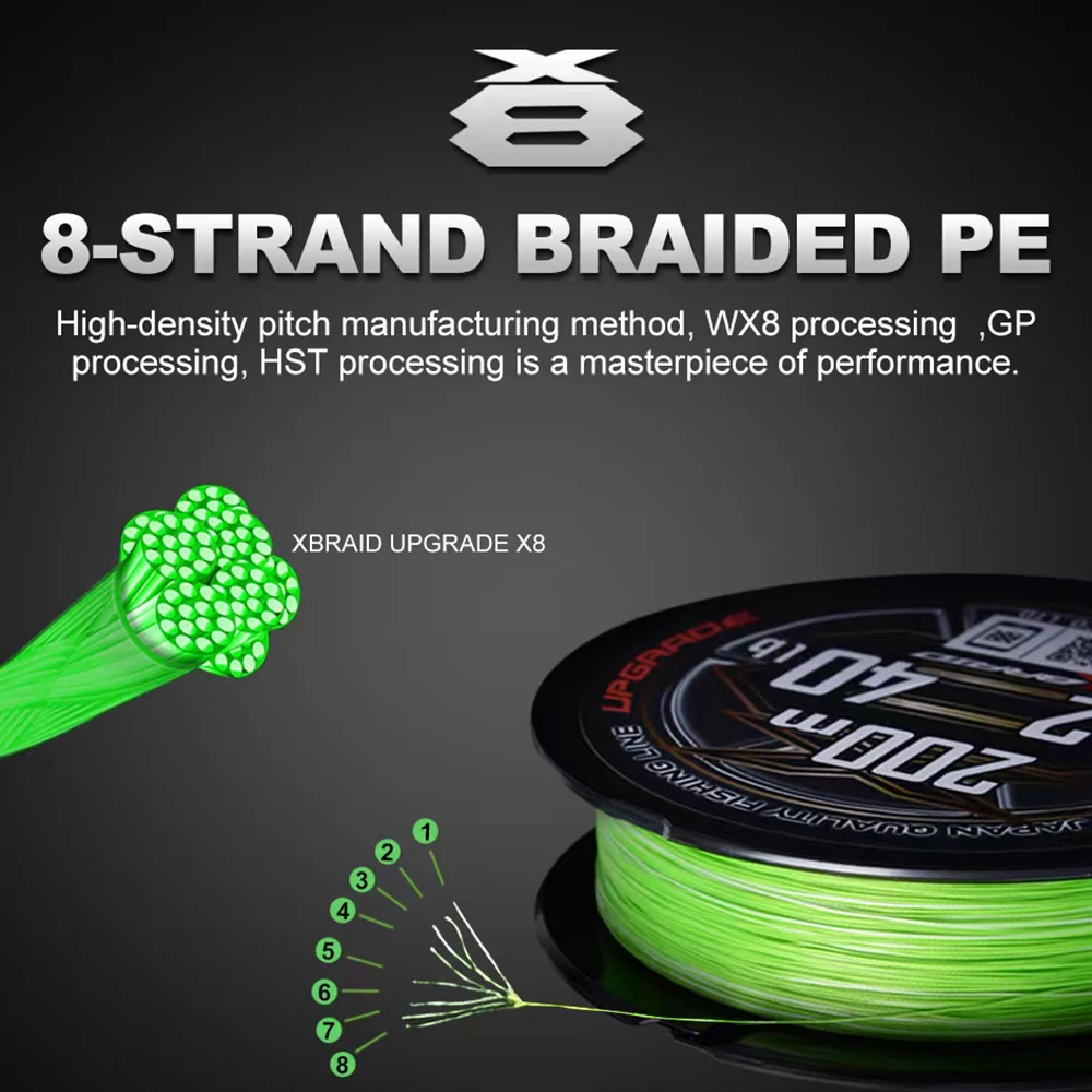 ⑤ El cuerpo de 8 hilos ofrece la superficie de línea más suave, sin división ni estiramiento. Hecho en Japón
