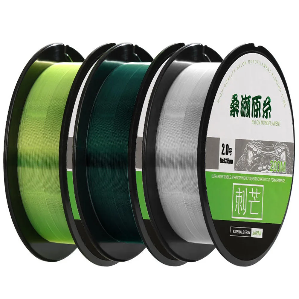 El exclusivo nailon y fluorocarbono, el hilo de pescar fabricado con tecnología de riel de rodadura en paralelo, la combinación de los dos materiales hace que el hilo de pescar sea extremadamente duradero, de alta resistencia y menos elástico.