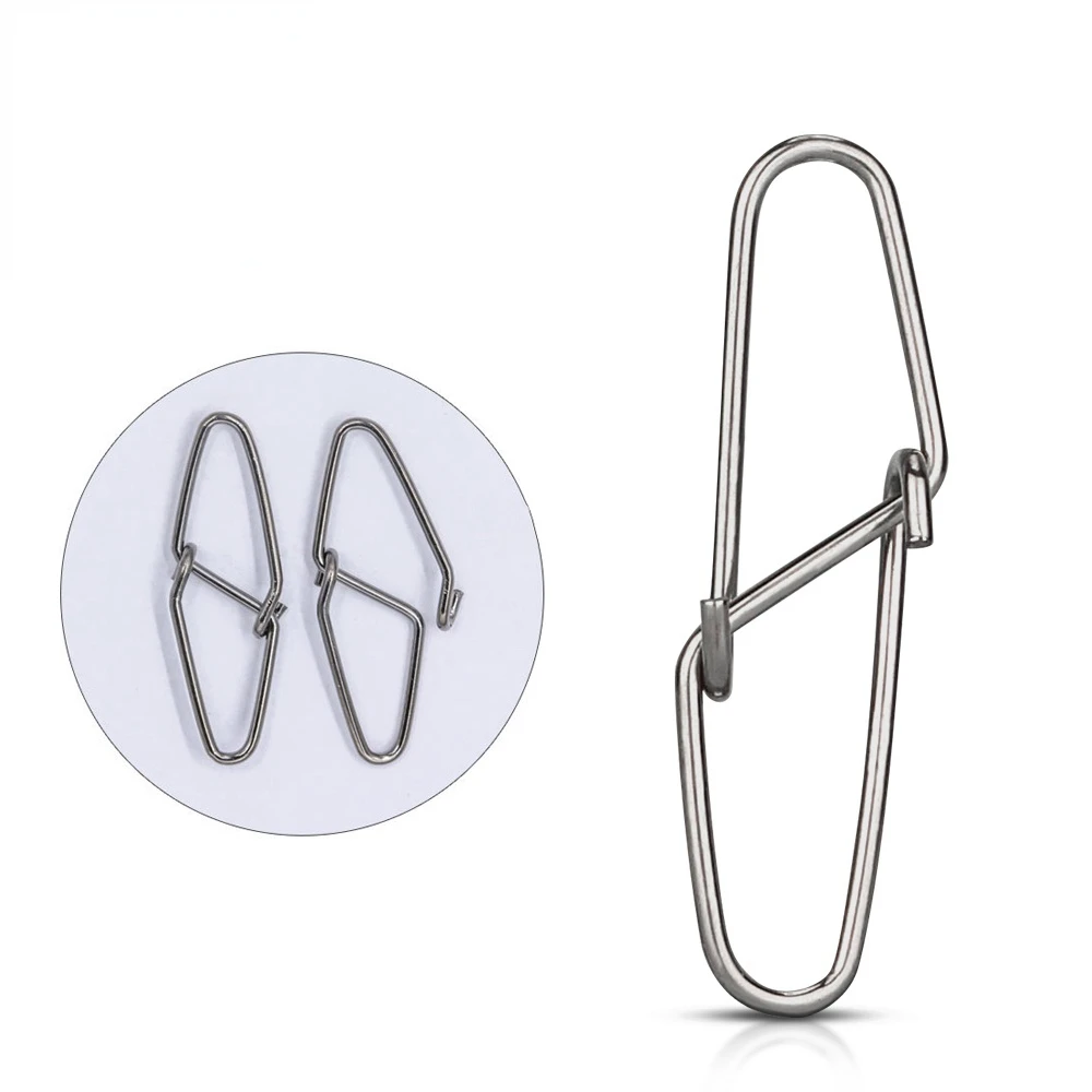 TIANNSII-50 piezas de broches de pesca, Conector de cierre para anzuelos de pesca, cierre de Clip de línea de acero inoxidable 15mm-34mm, accesorios de pesca