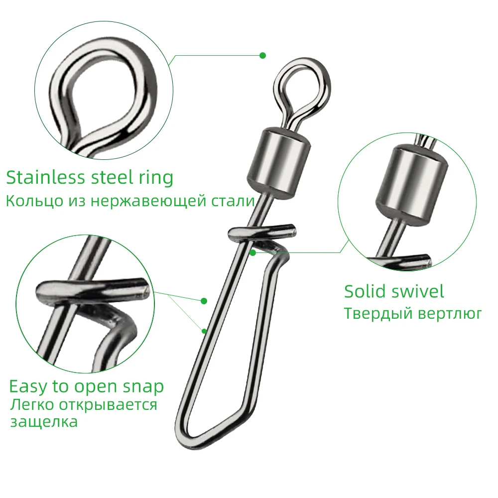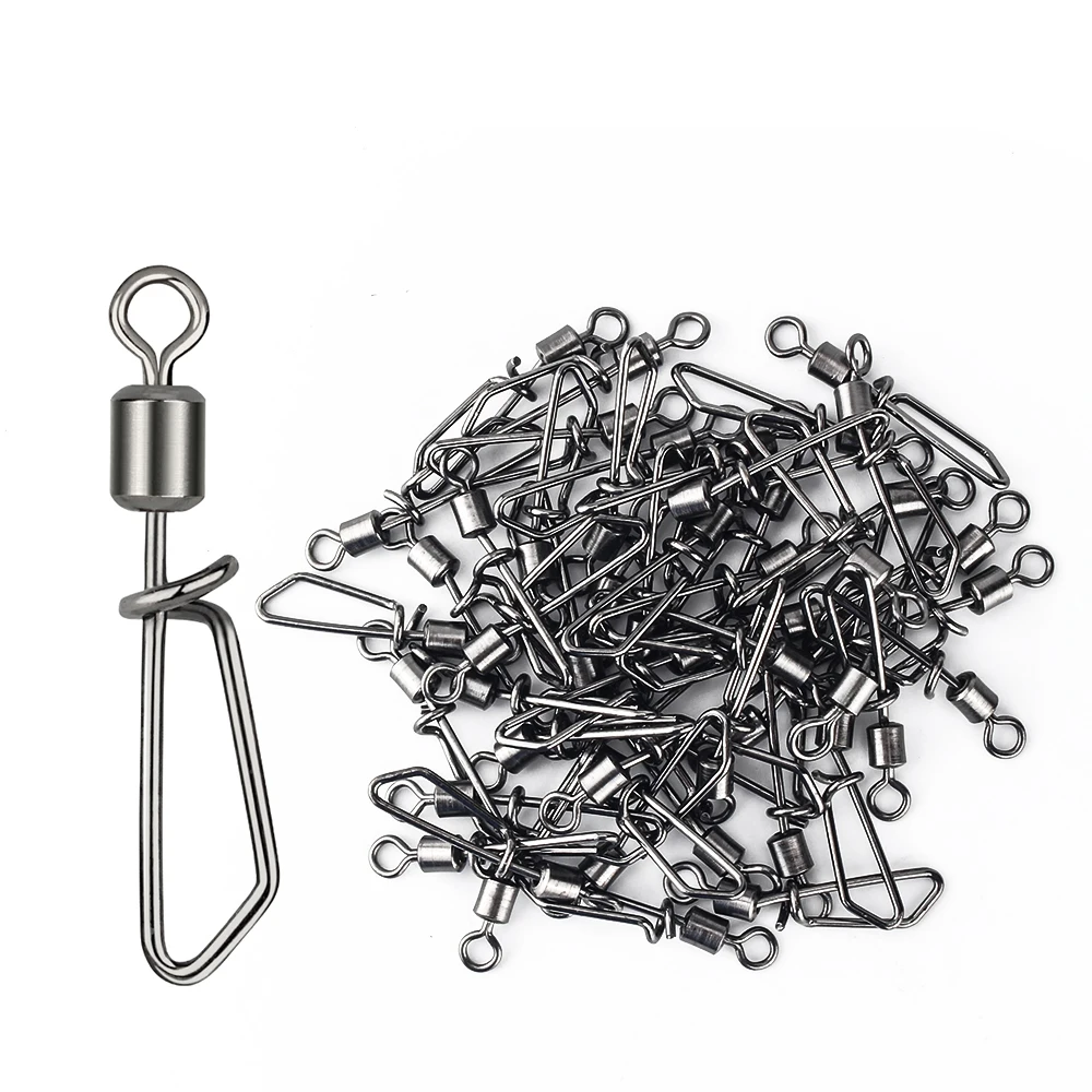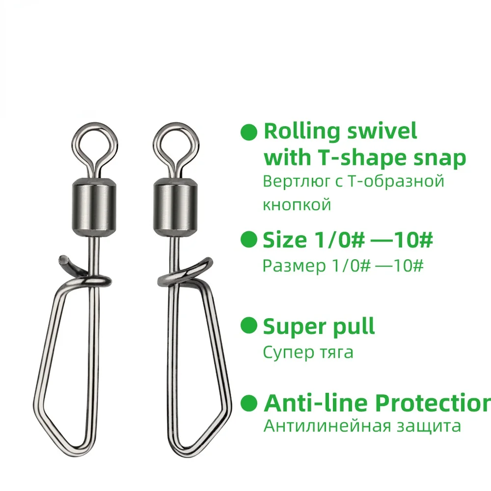 TIANNSII-Anillo giratorio de pesca con broche en forma de T, accesorios de pesca de carpa, de acero inoxidable 1/0 #-10 #, 50 unidades
