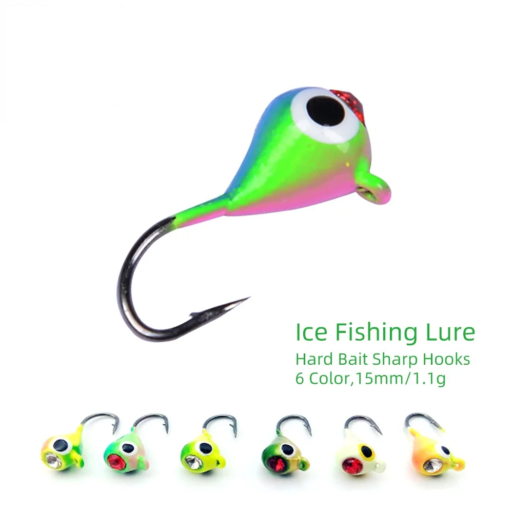 TIANNSII-Mini señuelo de pesca en hielo, cebo de Metal de 15mm/1,1g, cabeza de plomo, anzuelo de pesca de invierno, aparejos de pesca Jigging, 4 unidades por lote