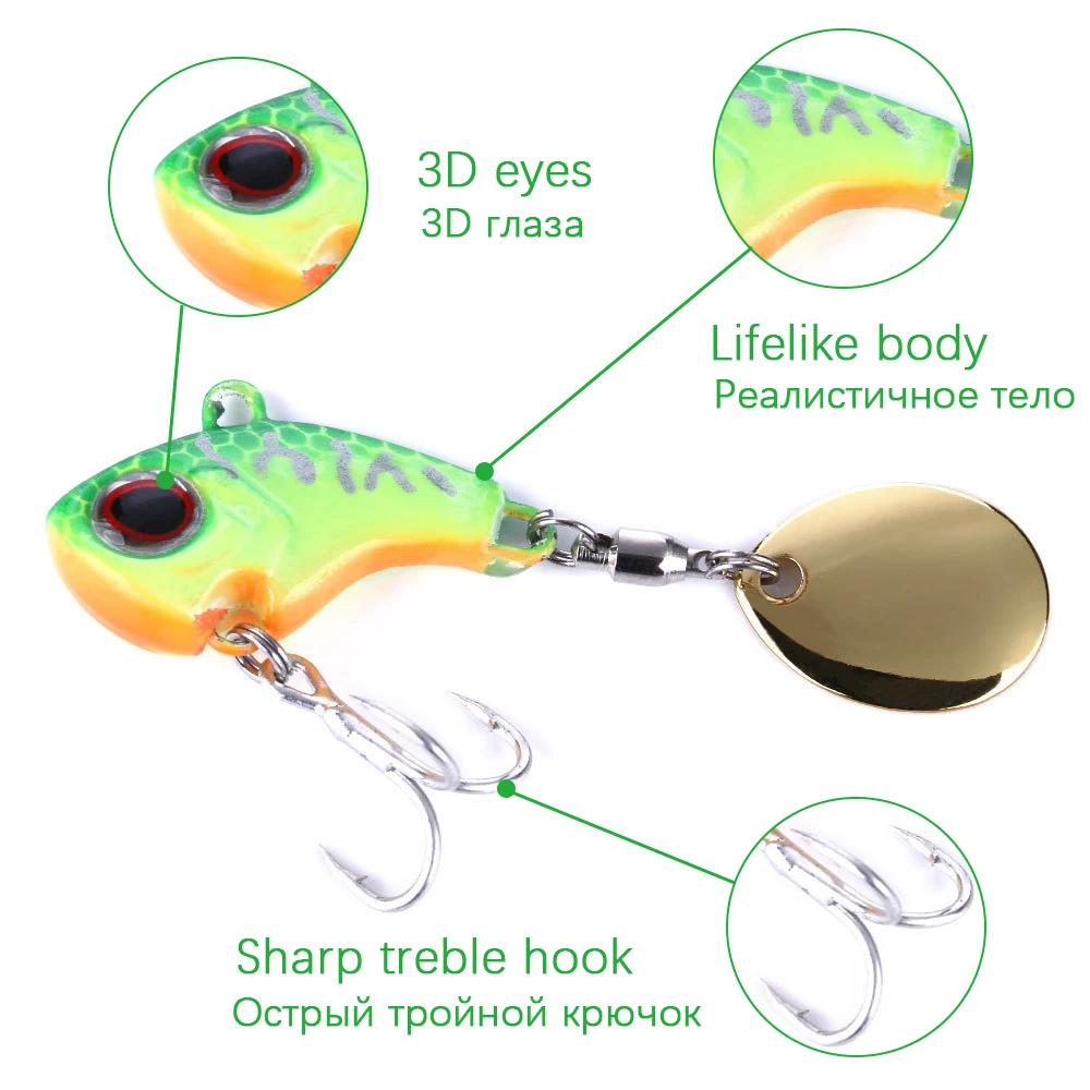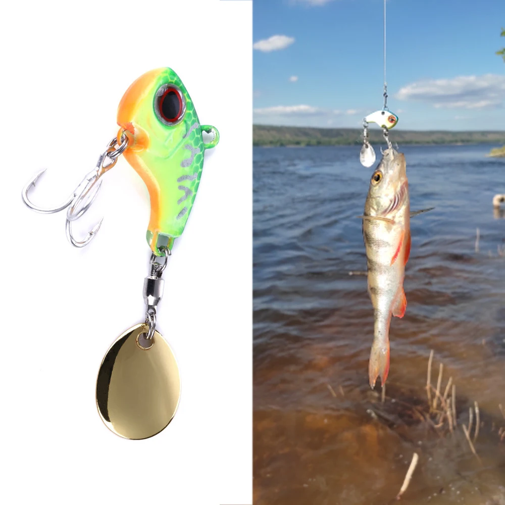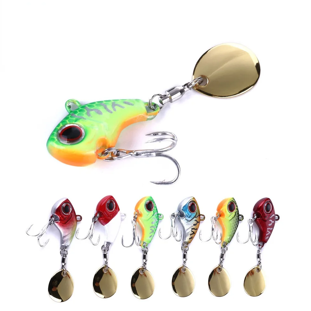 TIANNSII-Señuelos de Pesca giratorios de Metal, cebo VIB giratorio para Lucio, trucha, anzuelo triple, cebos duros artificiales, señuelo de cuchara giratoria