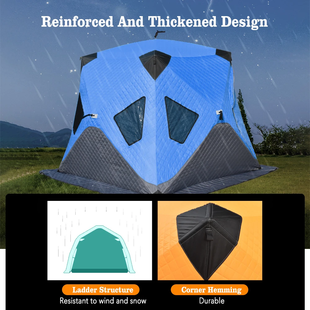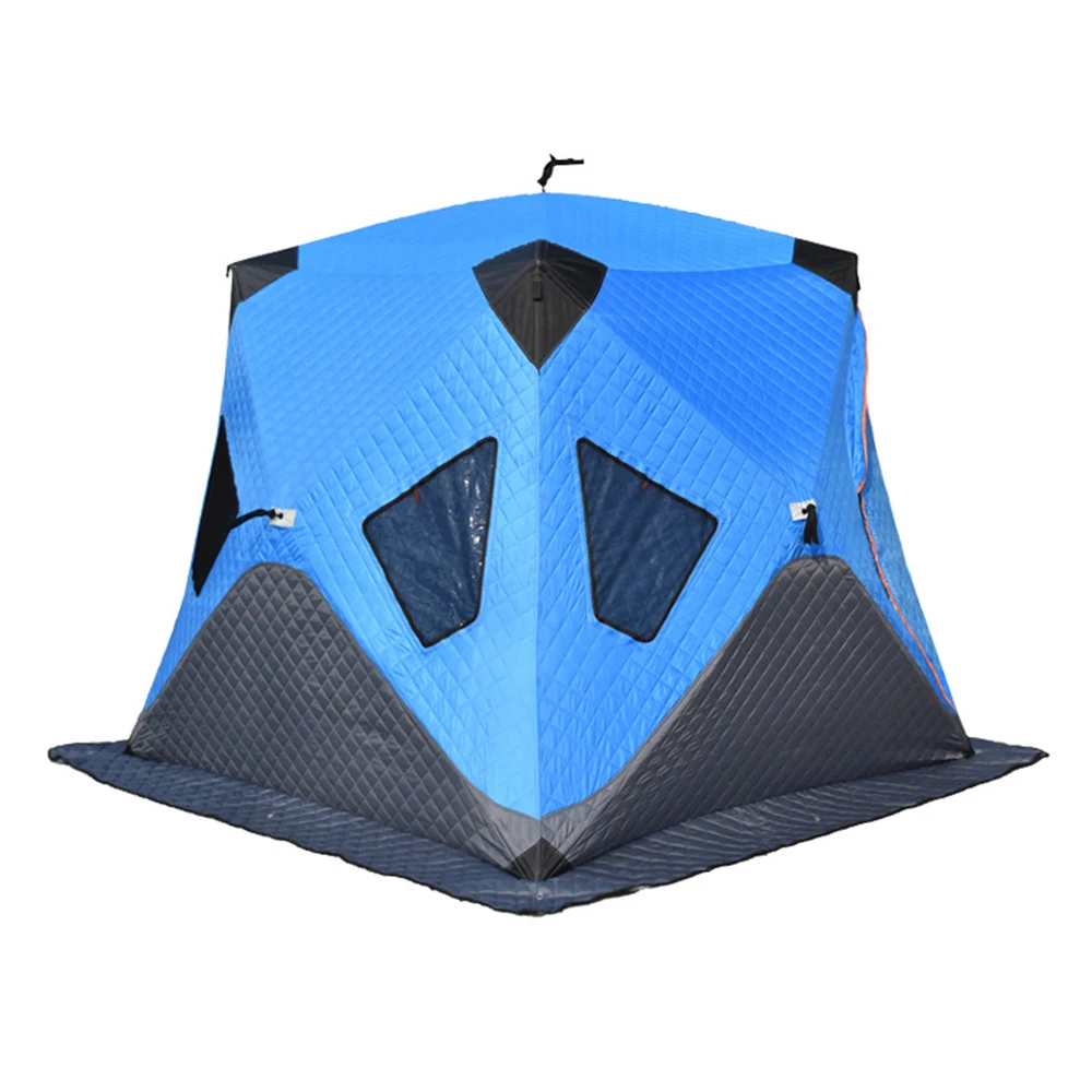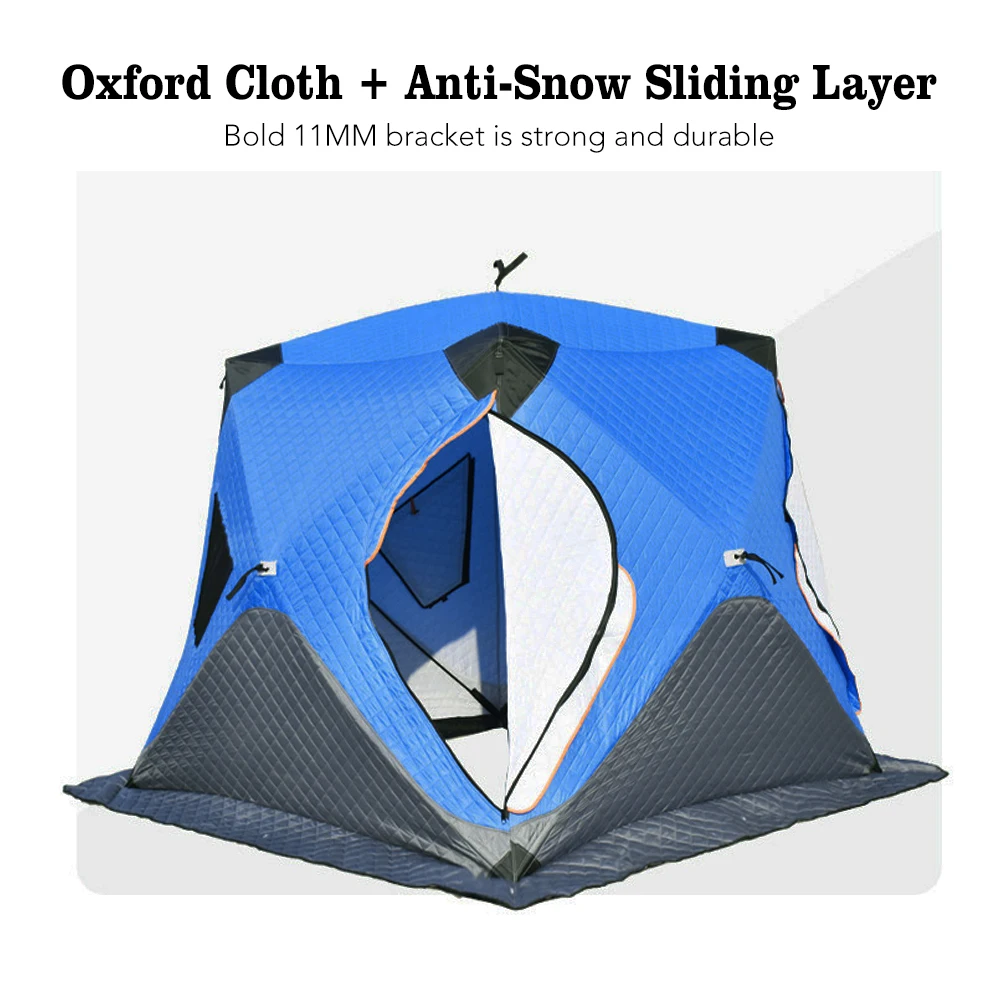 This 3-4 person winter fishing tent is easy to open with a pull and automatically pops up. It is warm and windproof, sturdy and thick, with a double-door large space.