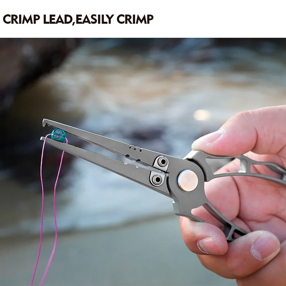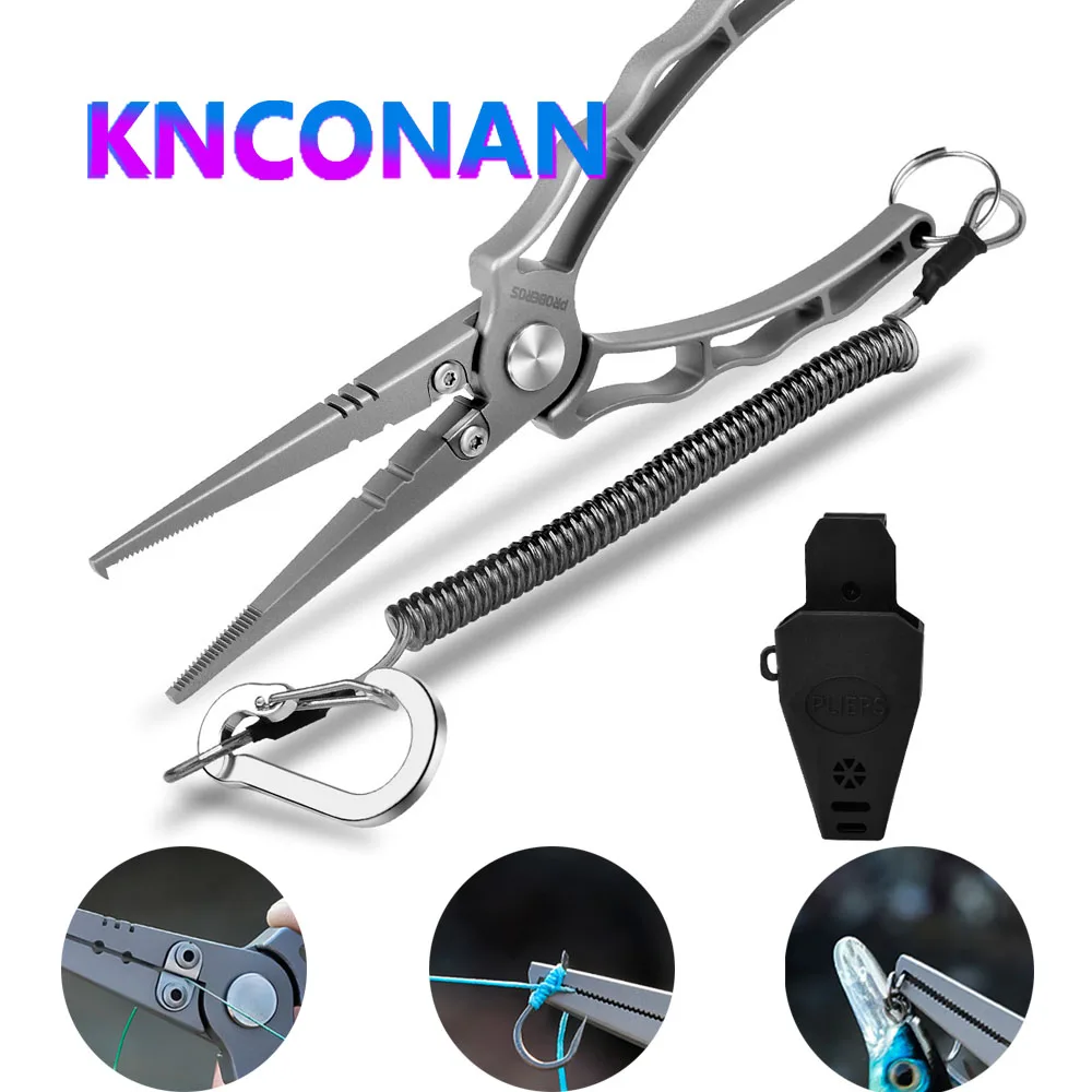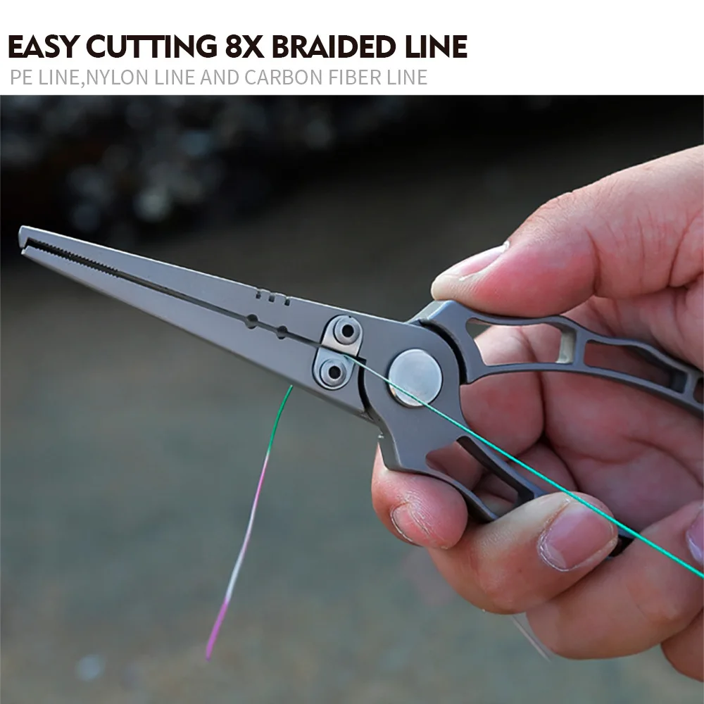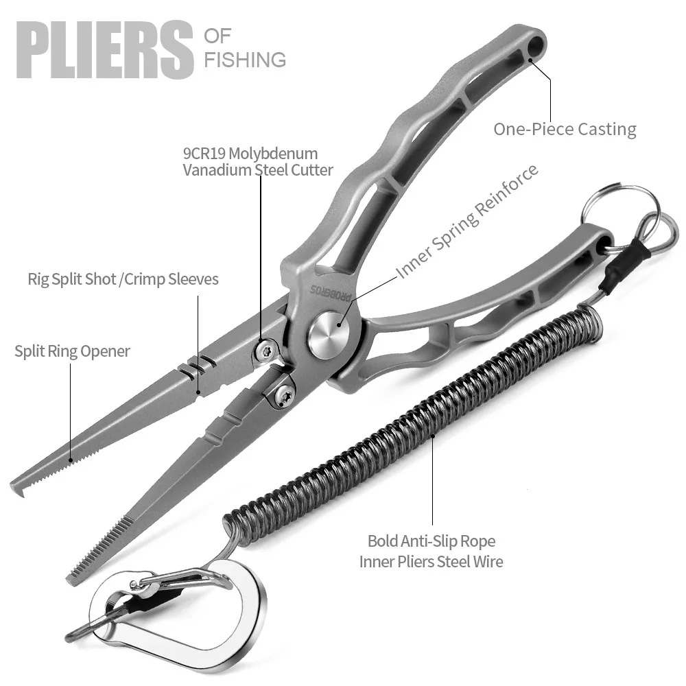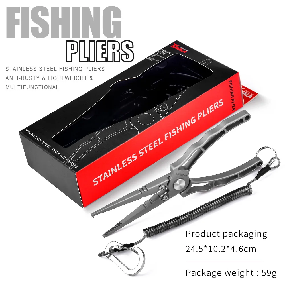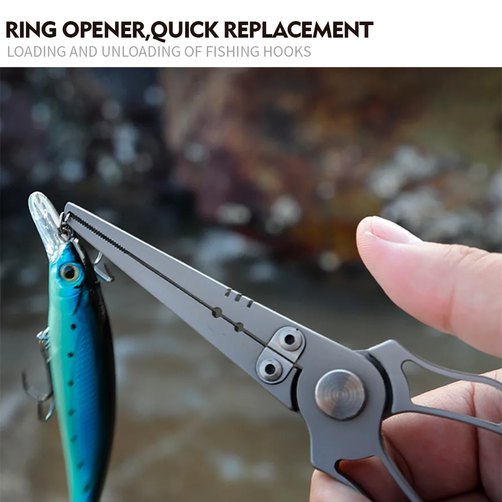 Tijeras cortadoras de línea, alicates de pesca con señuelo de 18,5 cm, gancho de punta larga resistente, herramientas removedores multifuncionales con funda de acero inoxidable